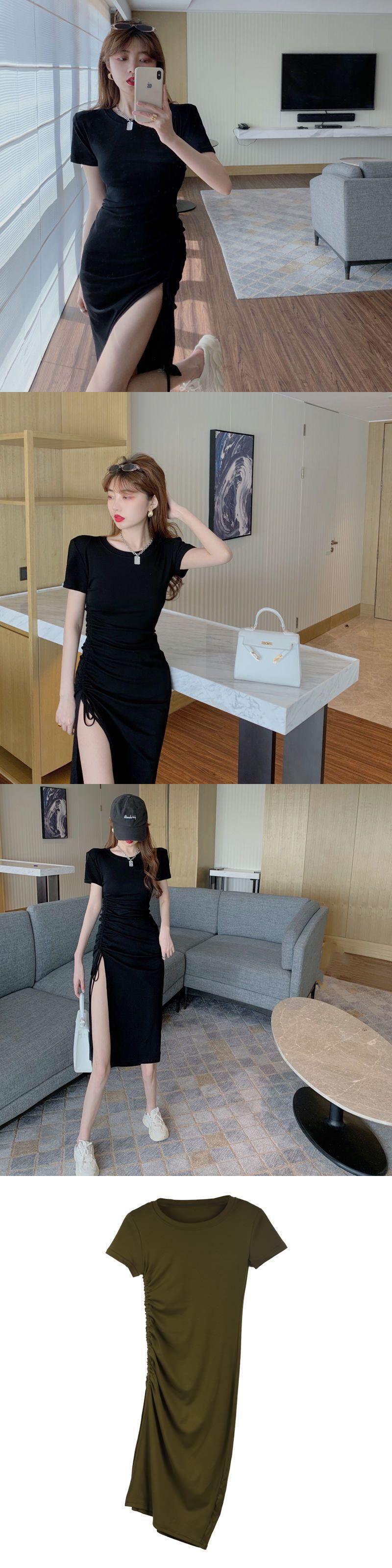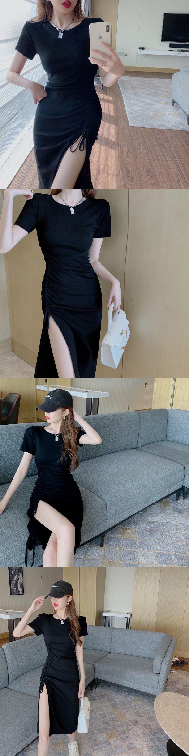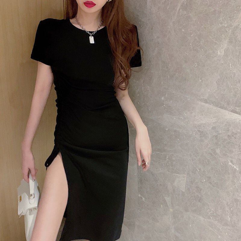 巾着 Vestidos デ半袖黒ドレス綿ローブウエスト Feminino ヒップ Y2k ドレスマキシ夏 ショート ブラック コットン ハーフスリーブ サマー 夏物