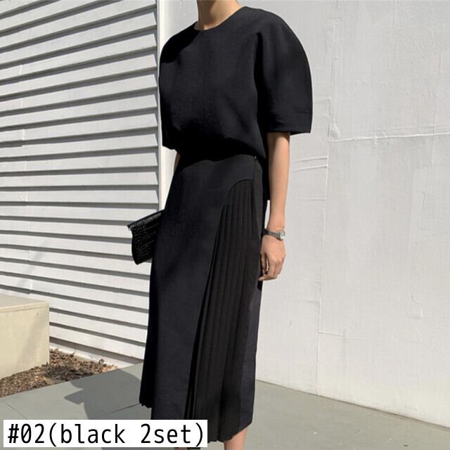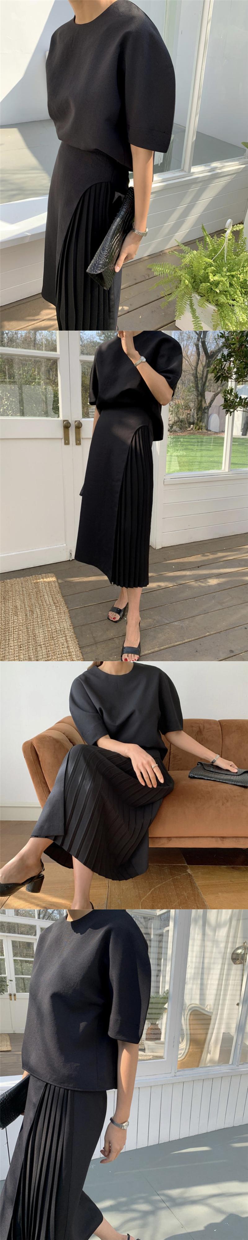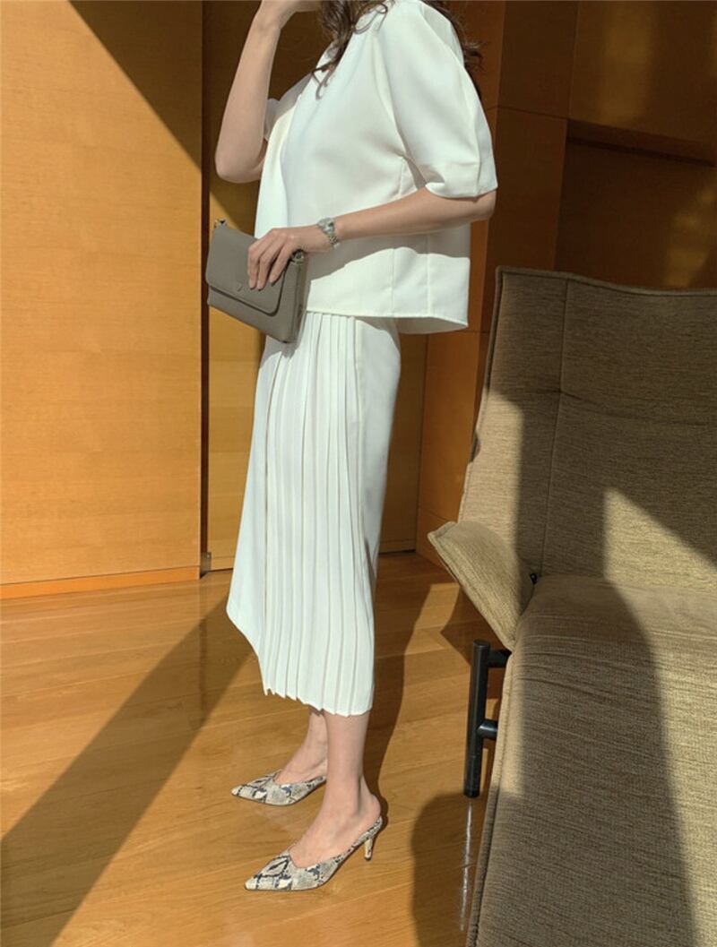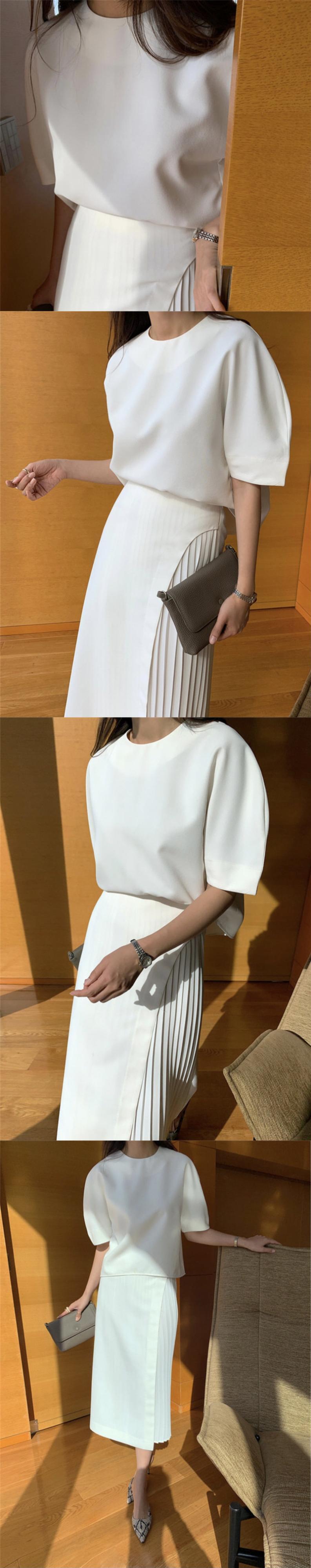 オールマッチピュアカラーシンプルホワイトウエストサイドプリーツスカートロングスカートレディースハーフTシャツシャツ