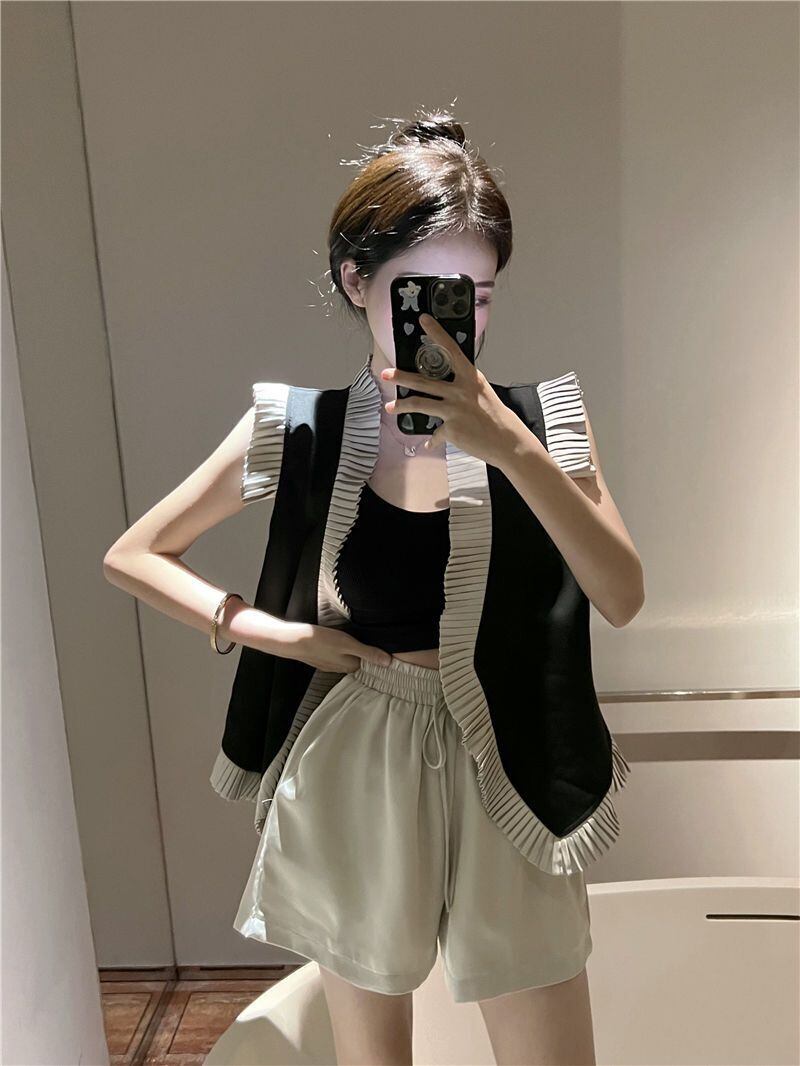 ショートセット ブレザー 2 点セット レディース 服装 スーツ ノースリーブ ベスト ジャケット プリーツ コート Y2k ショート パンツ