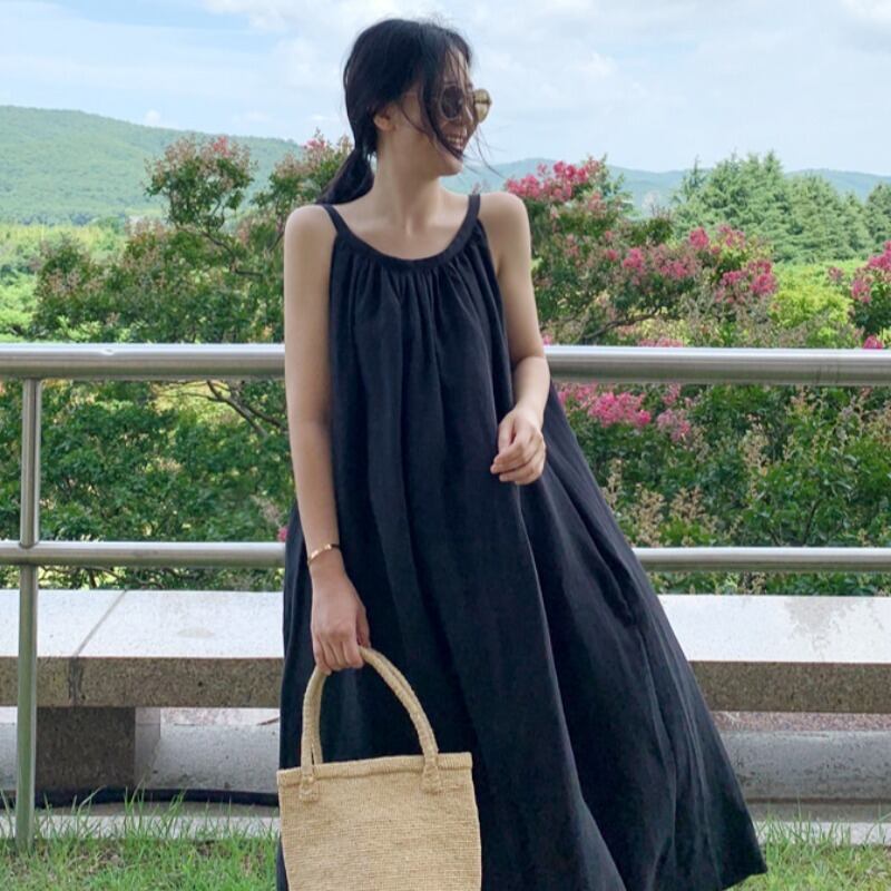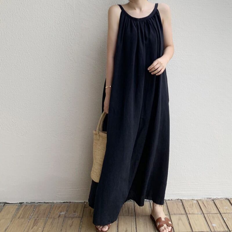 ルーズサマー A ライン ノースリーブ ブラック キャミソール ドレス ミニマリズム ベスト エス パラ マキシ Y2k ローブ 夏物 Aライン