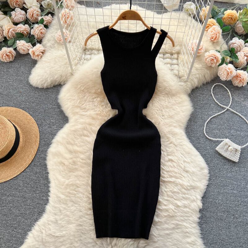 スリム A ラインセクシー背中開いた Vestidos デ中空アウトラップヒップボディコンニットベストドレスローブミニ白セータードレス ホワイト Aライン
