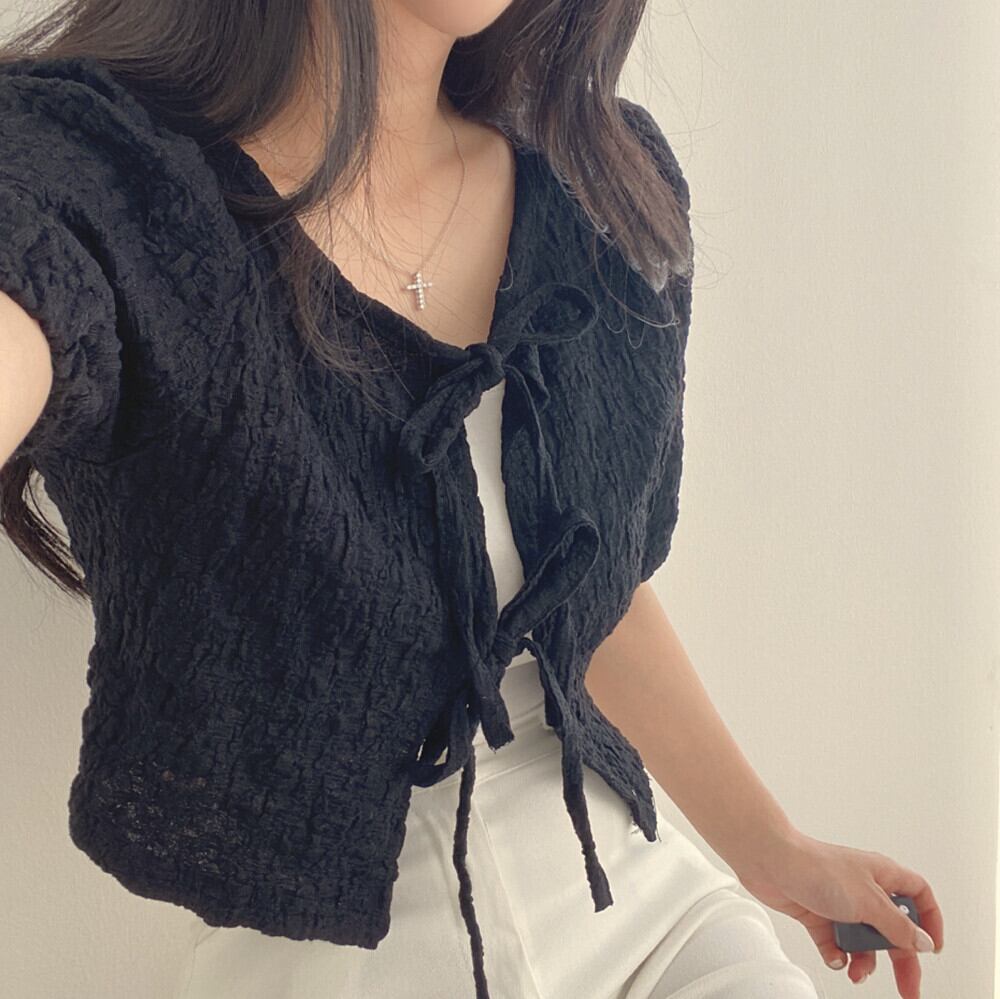 甘いブラウス包帯 V ネックパフスリーブひだシャツクロップトップス夏シックブラウスコート 大人ガーリー スウィート キュート カジュアル サマー 夏物 Vネック