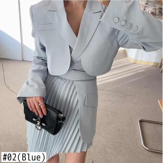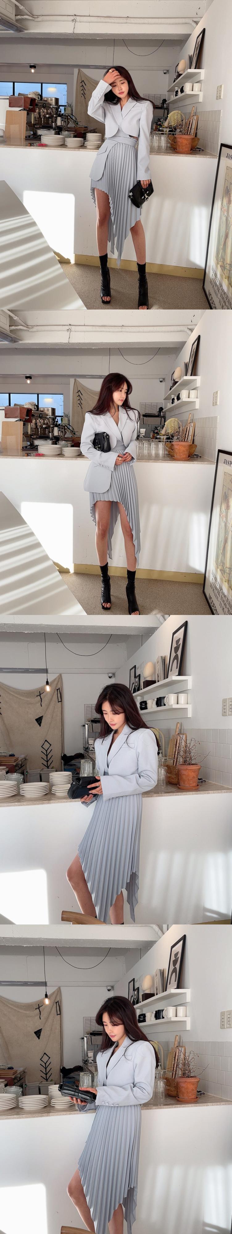 スカートスーツ偽ツーピースブレザー Femenino クロップホワイトプリーツ不規則スカートセット気質ボディコンオフィスレディジャケット 会社 学校 通勤や通学にも