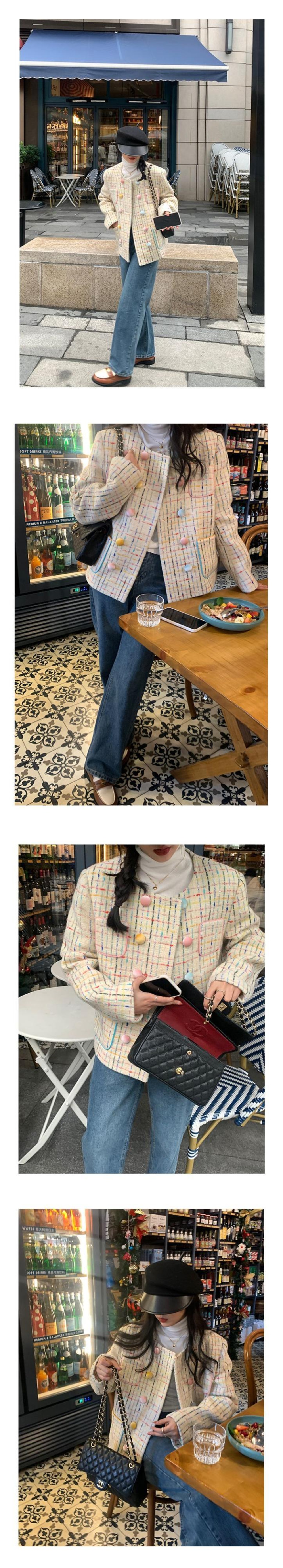 ルーズダブルブレストカラフルチェック柄ジャケット Jaqueta 原宿冬コート Chaquetas パラ かわいい ウィンター 冬物