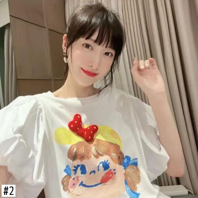 ルーズバブル漫画トップ弓白半袖 Tシャツグランジ Tシャツグラフィック Tシャツ Ropa Tシャツ Y2k ショート ホワイト リボン ハーフスリーブ