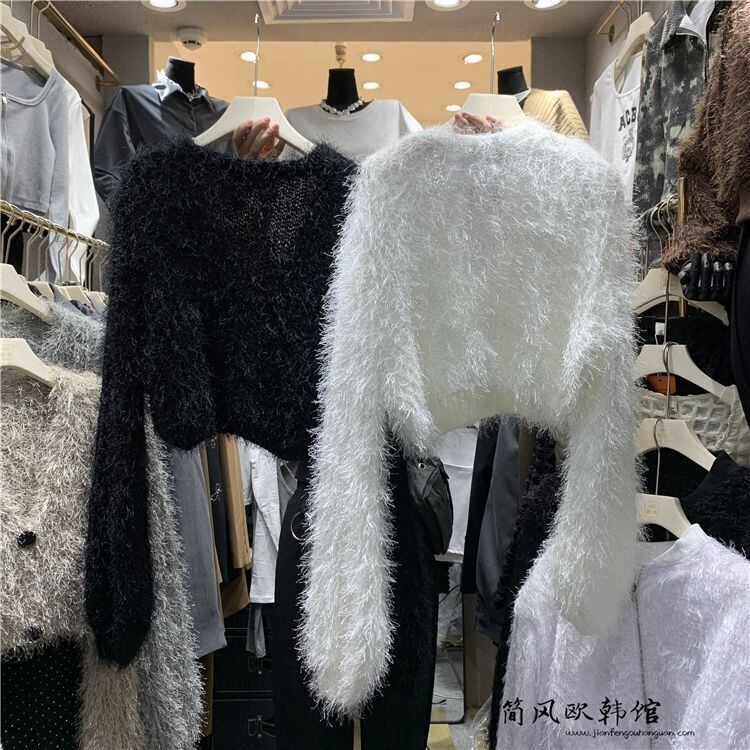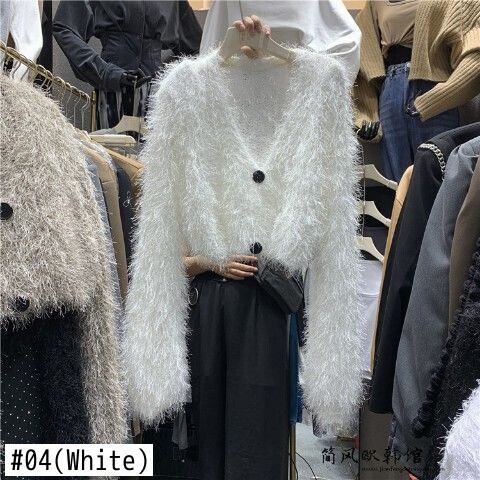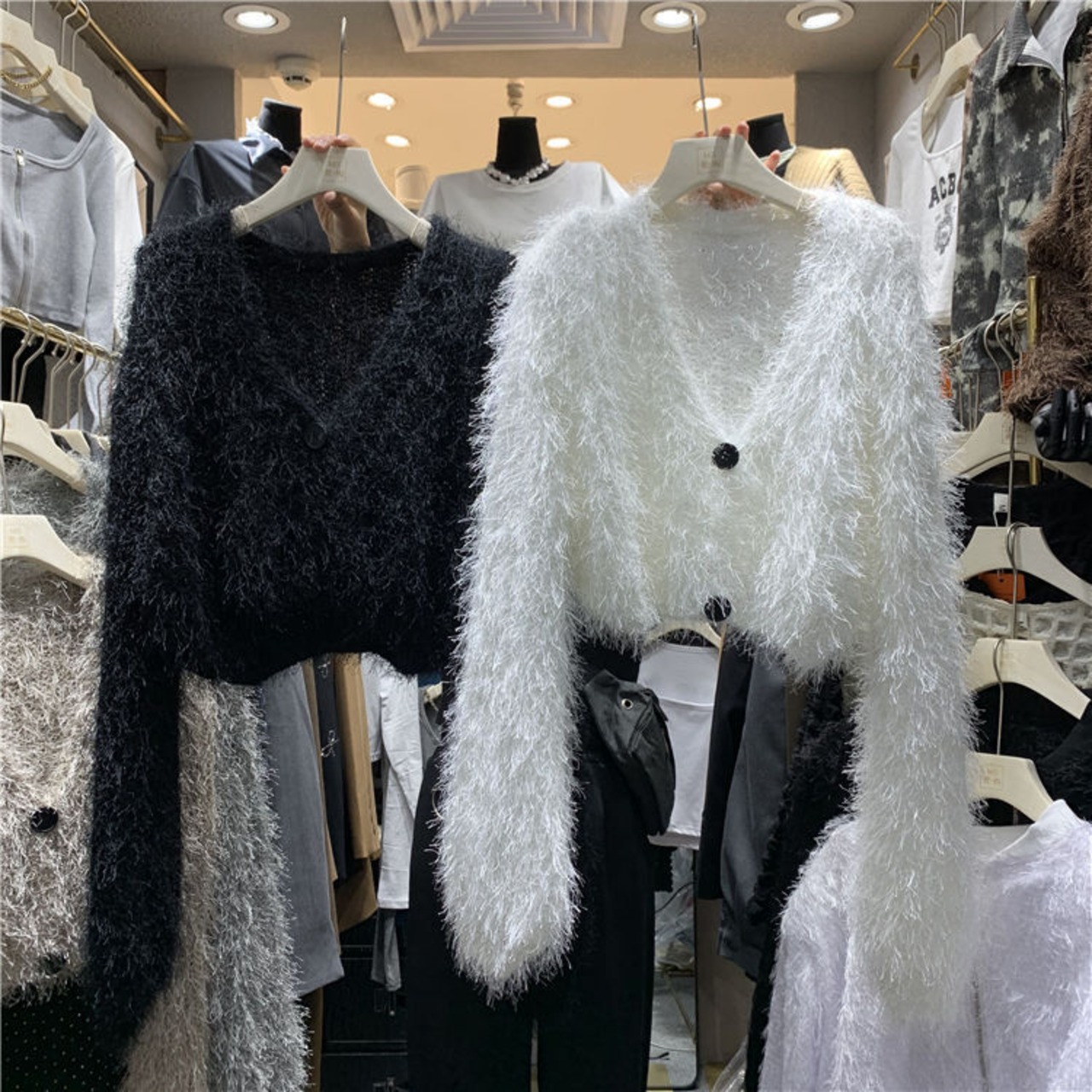 V ネック白 Tels セーター Y2k 服クロップドカーディガン Feminino プル春セータースリムコート ホワイト スプリング 春物