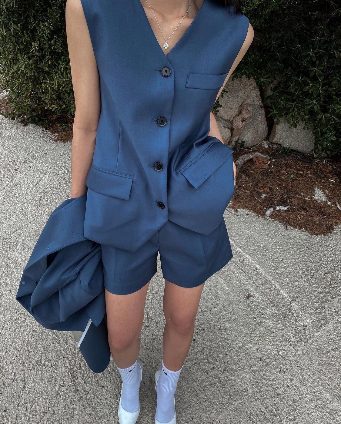 ショートスーツスタイルショートセットマッチングシングルブレストベスト V ネックノースリーブジャケットオフィスレディコート夏服 サマー 夏物 Vネック 会社 学校 通勤や通学にも