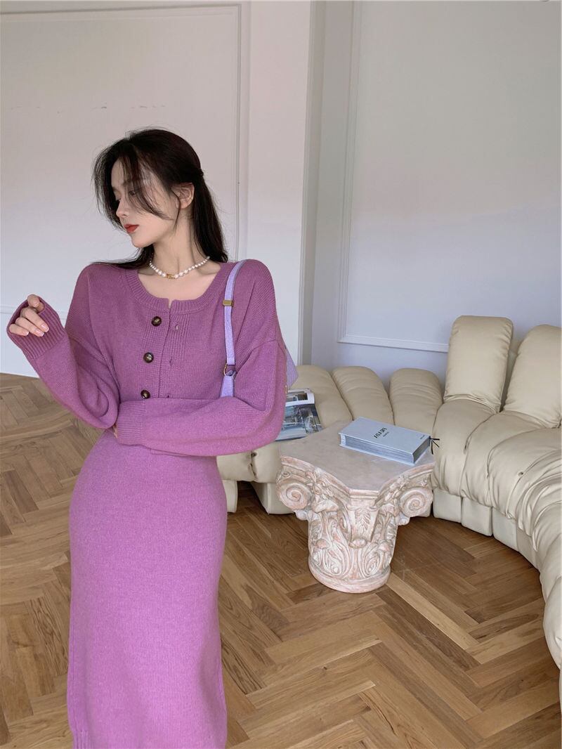 ショートレッドニットカーディガンセクシーツーピースセットクロップトップ黒セーター中断ドレス秋 Vestidos コート ブラック オータム 秋物