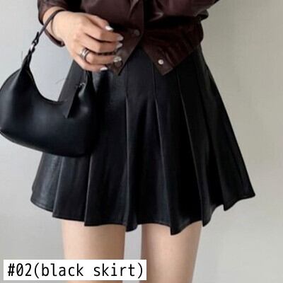 ラペルダブルポケットショートブラックレザージャケットウエストプリーツスカートミニY2k冬コートPU 2セット ウィンター 冬物