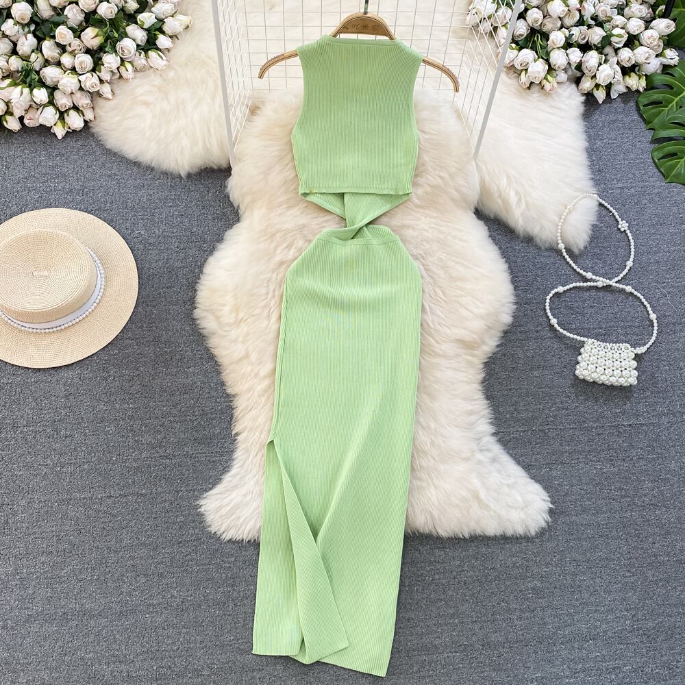セクシー中空ウエストノースリーブベスト黒ニットドレスボディコンローブラップヒップ Vestidos デ弾性 ブラック エラスティック 伸縮 ソリッドカラー