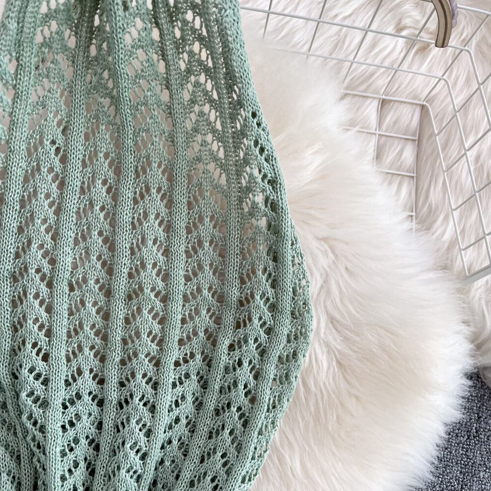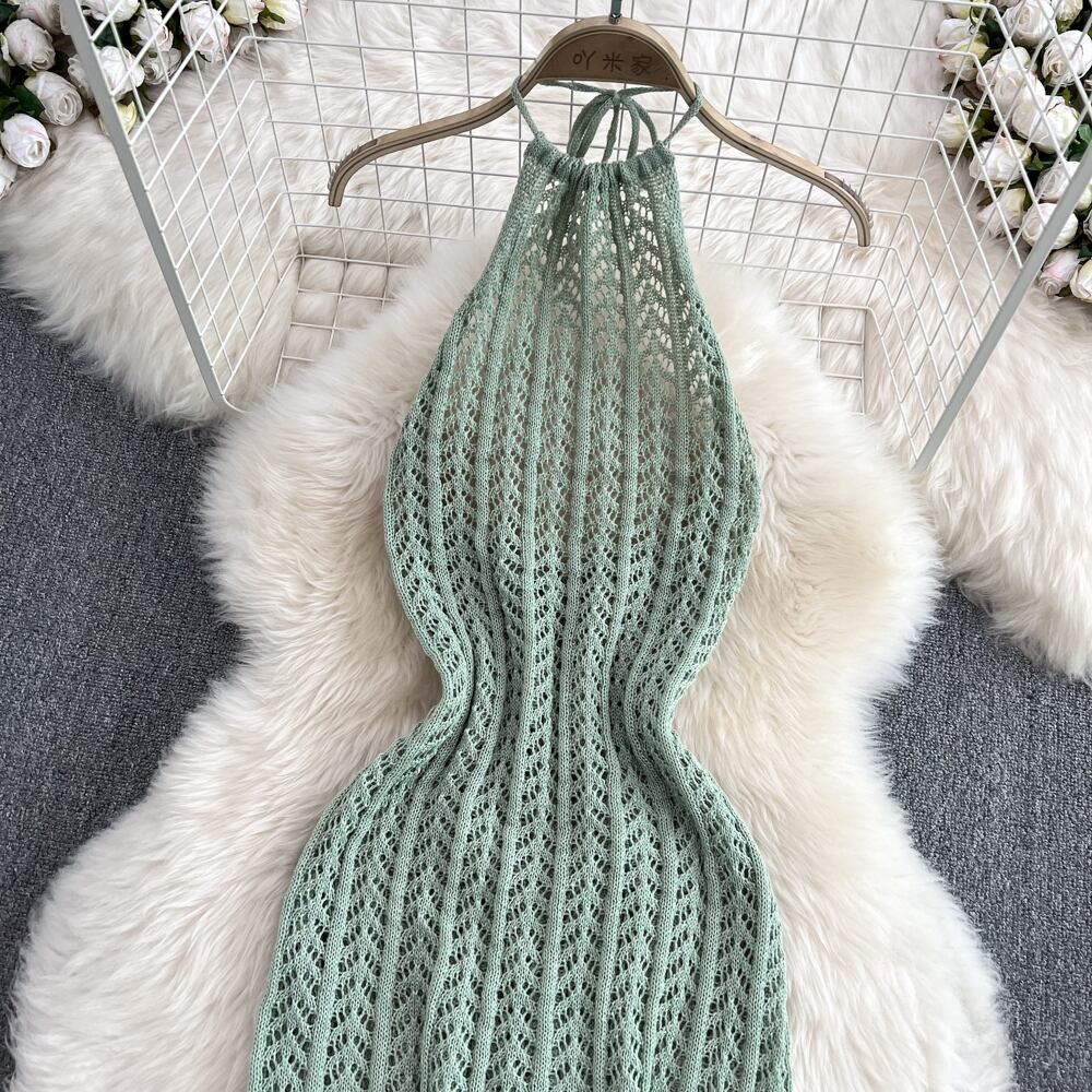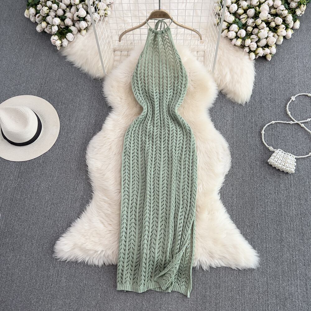 セクシーホルターベストドレス Vestido スリムスプリットオープンバックノースリーブ中空アウト黒ニットドレスローブ白 ホワイト ブラック