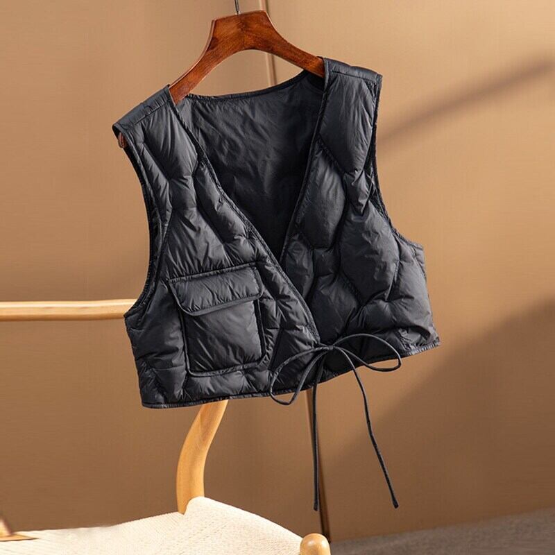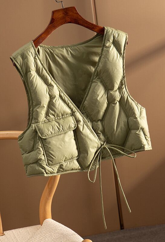 ダウンコットンベストジャケット V ネックレースアップノースリーブルーズライトダウンコート秋冬トップスパーカー オータム 秋物 ウィンター 冬物 Vネック