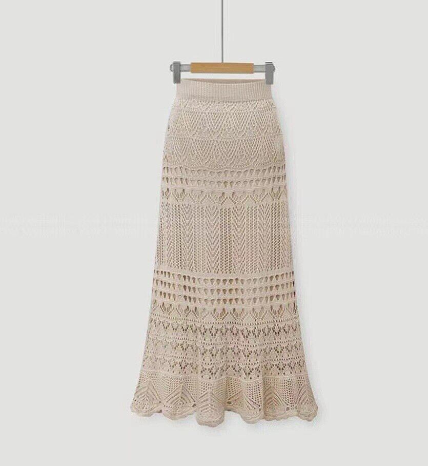 Faldas Largas ニットヒップラップ中空アウトかぎ針編みウエストスリム Y2k スカートオフィスレディ黒レーススカートロング ブラック 会社 学校 通勤や通学にも