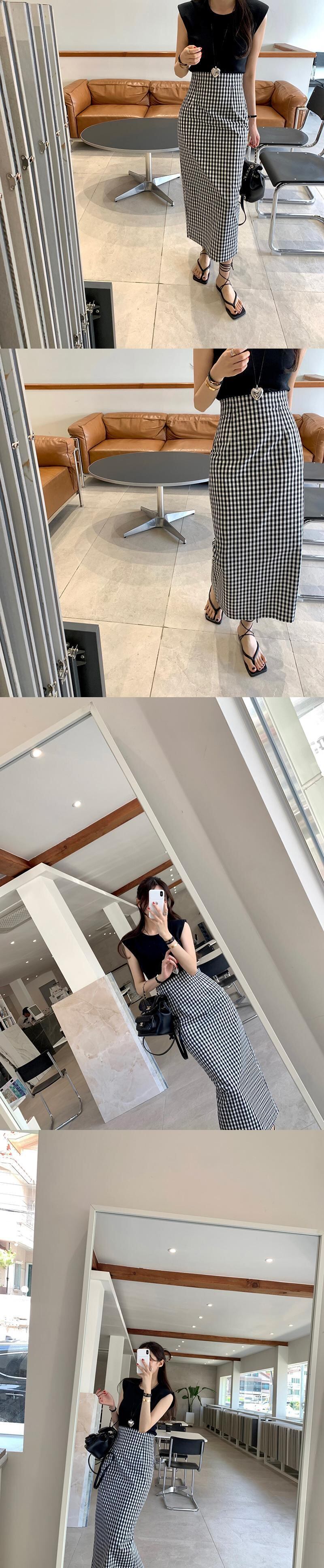ウエストスリムラップヒップレトロコントラストブルーチェック柄スカートスタイル段段段 largas ミディスカート黒マキシスカート ブラック