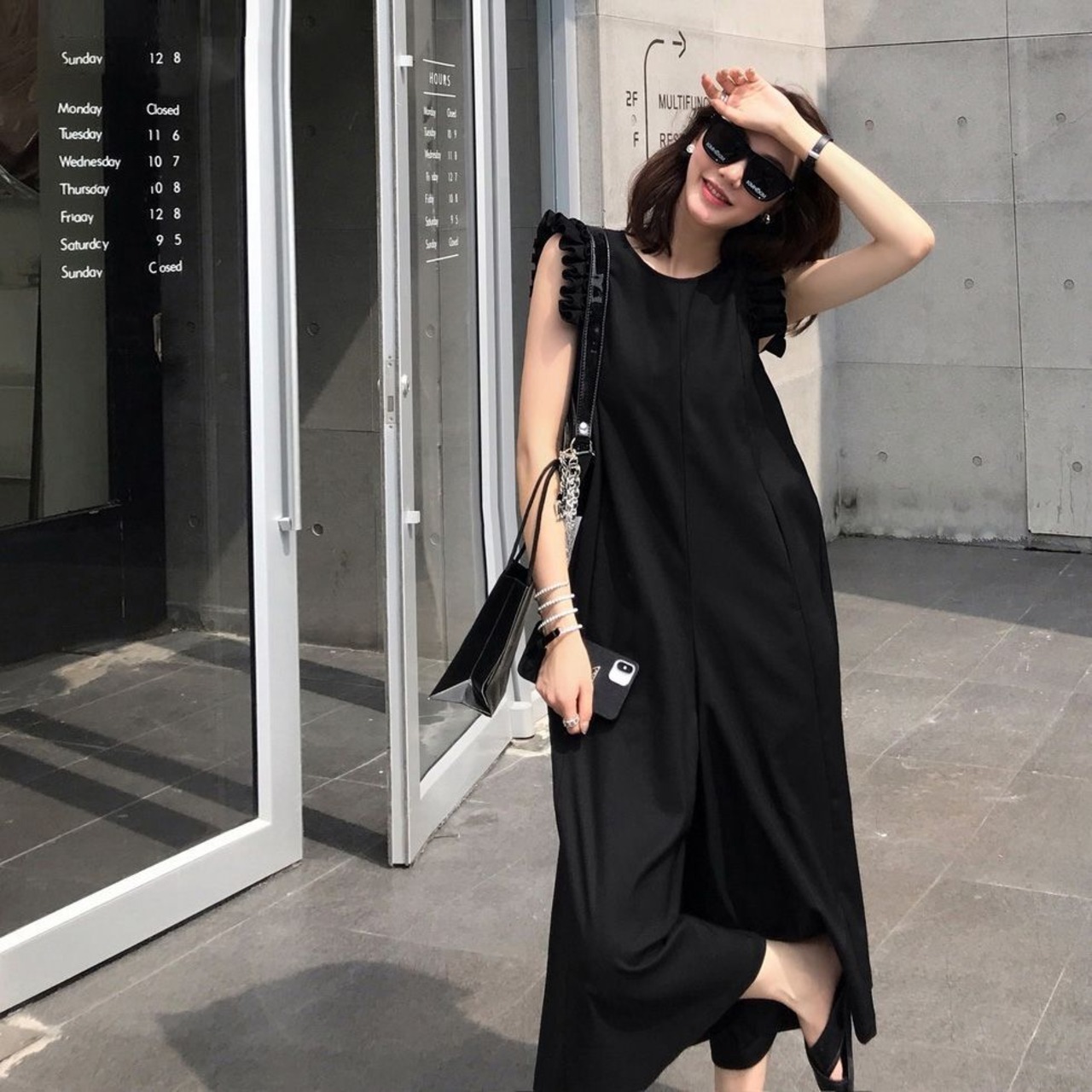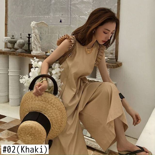 真菌カーキフライングスリーブジャンプスーツワイドレッグワンピースセクシー黒ジャンプスーツロンパースオーバーオール春 ブラック スプリング 春物 ワイドパンツ