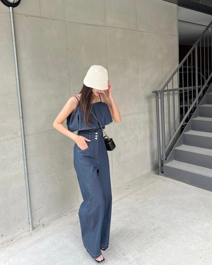 パンツセットセクシータンクトップフリルキャミソール2点セットレディース衣装トラックスーツワイドレッグジーンズY2kパンツスーツストラップレスシャツ ワイドパンツ