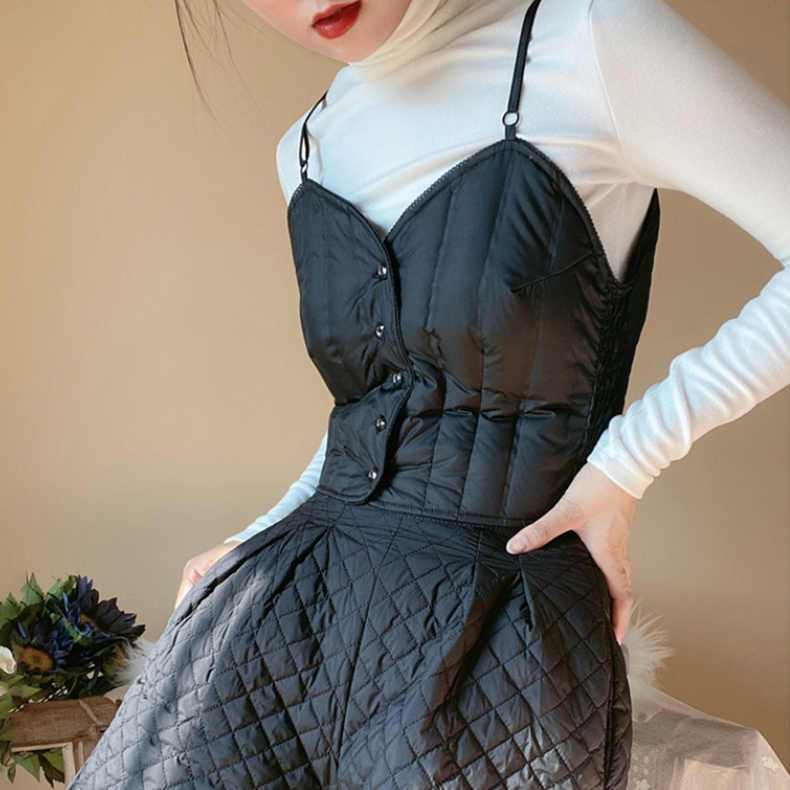 シングルブレストクロップトップ春秋パーカーキルティングコットンタンクトップセクシー黒キャミソールベストコート ブラック スプリング 春物 オータム 秋物