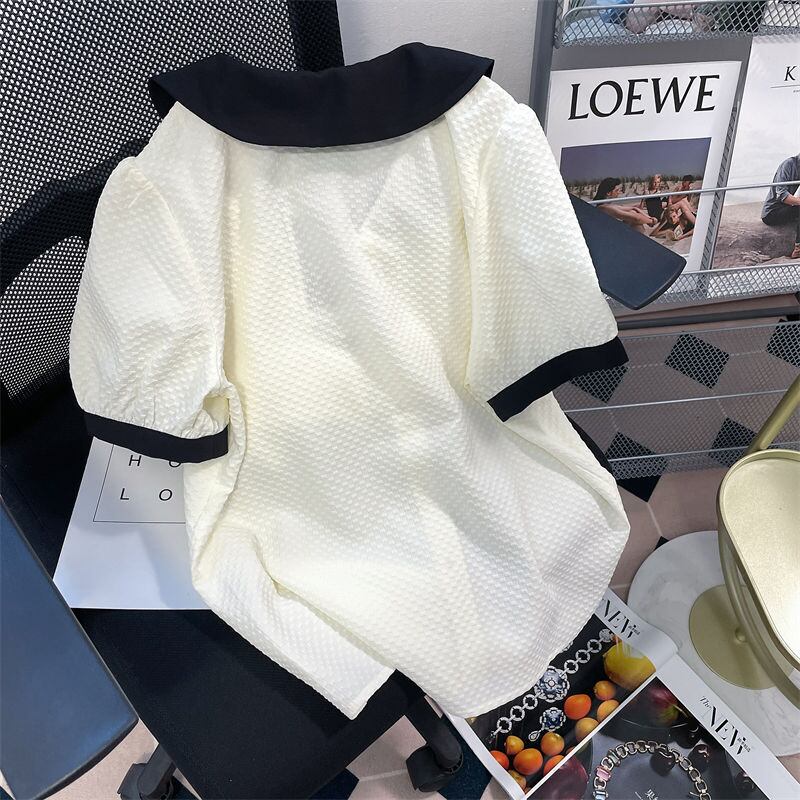 シャツ s es 半袖ブラウスワッフルシャツクロップトップスカミーサチェック柄シャツ人形コート ショート ハーフスリーブ