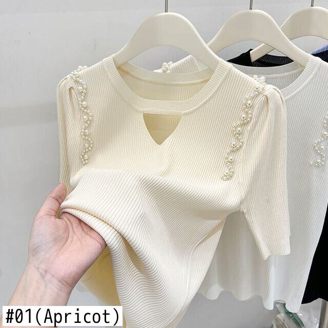 シャツ中空アウトアイス半袖 Tシャツニット春夏セーター Tシャツトップ ショート ハーフスリーブ スプリング 春物 サマー 夏物 シルク