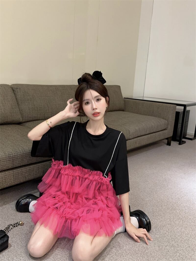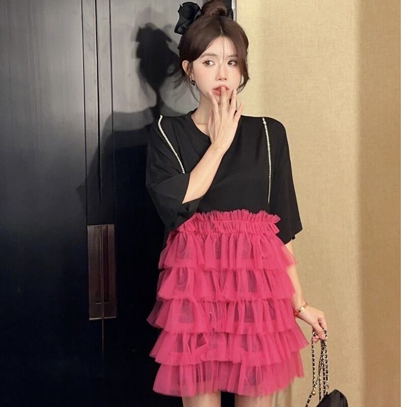 ルースラインストーンメッシュドレス夏 Vestido Feminino 半袖白 Tシャツドレスローブ夏マキシドレス綿 ショート ホワイト コットン ハーフスリーブ サマー 夏物