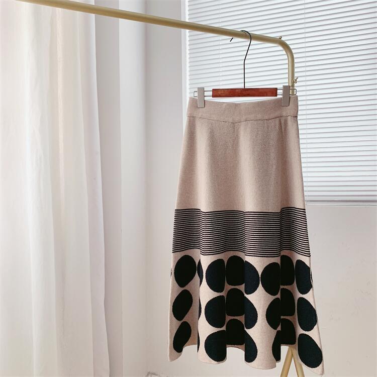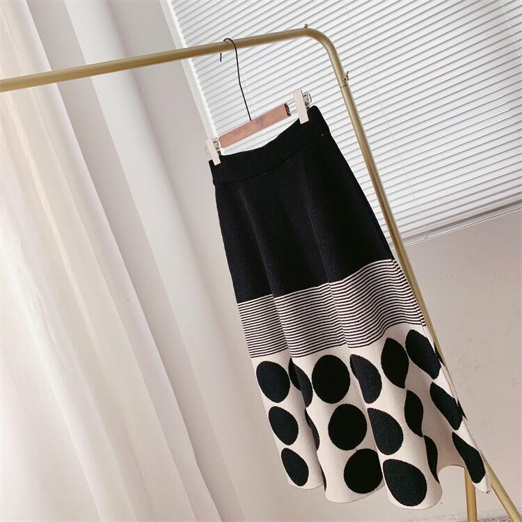 スタイルニットウエスト水玉スカート秋冬オフィスレディ弾性 A ラインプリーツミディスカート エラスティック 伸縮 オータム 秋物 ウィンター 冬物 Aライン 会社 学校 通勤や通学にも