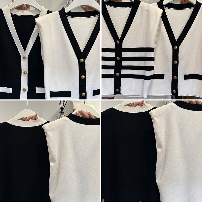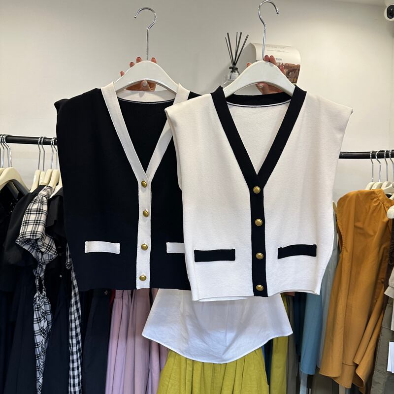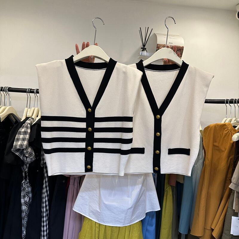 セーターベスト Chaleco V ネック Colete Feminino ストライプニットベストクロップカーディガンレトロコートトップ Vネック