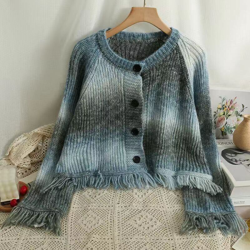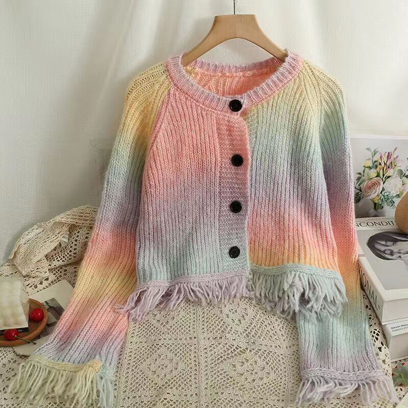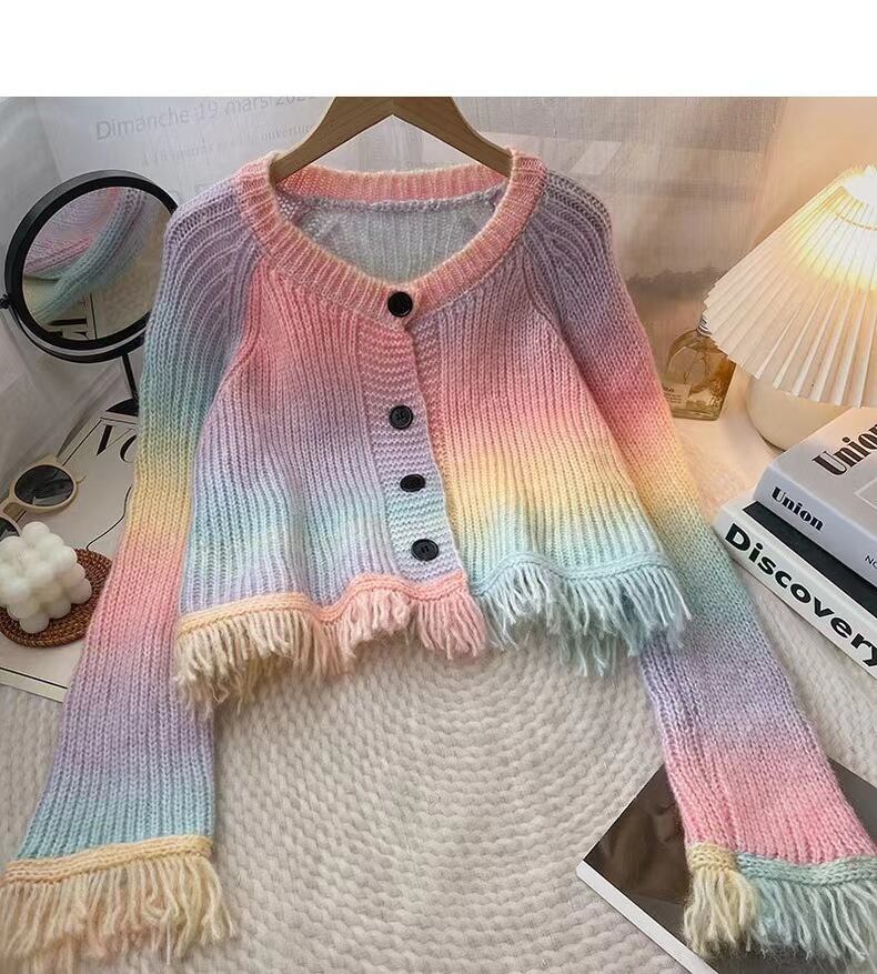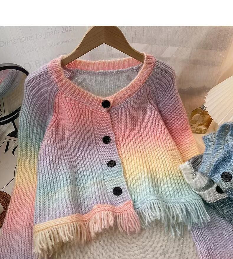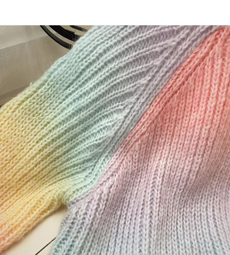 プルグラデーションレインボーニットカーディガン秋冬ルーズスリーブテルセーターコートセーター オータム 秋物 ウィンター 冬物