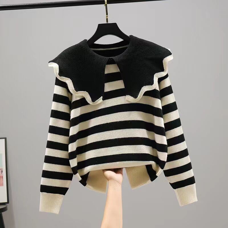 人形首輪赤ストライプセータージャンパーセーターデ春秋プルオーバーセーターシック レッド スプリング 春物 オータム 秋物