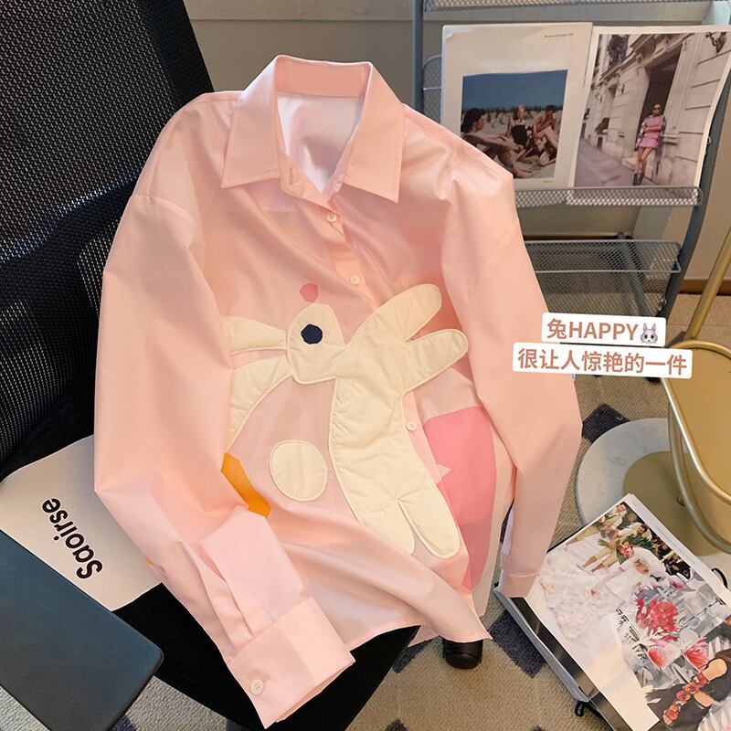 長袖ピンクウサギシャツカミーサシャツブラウススタイルトップスウィート ロング 大人ガーリー キュート カジュアル