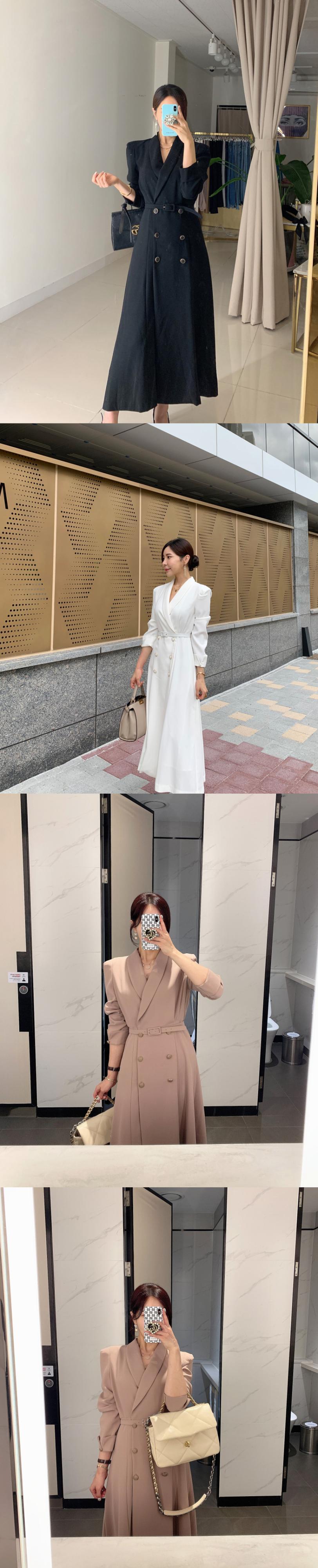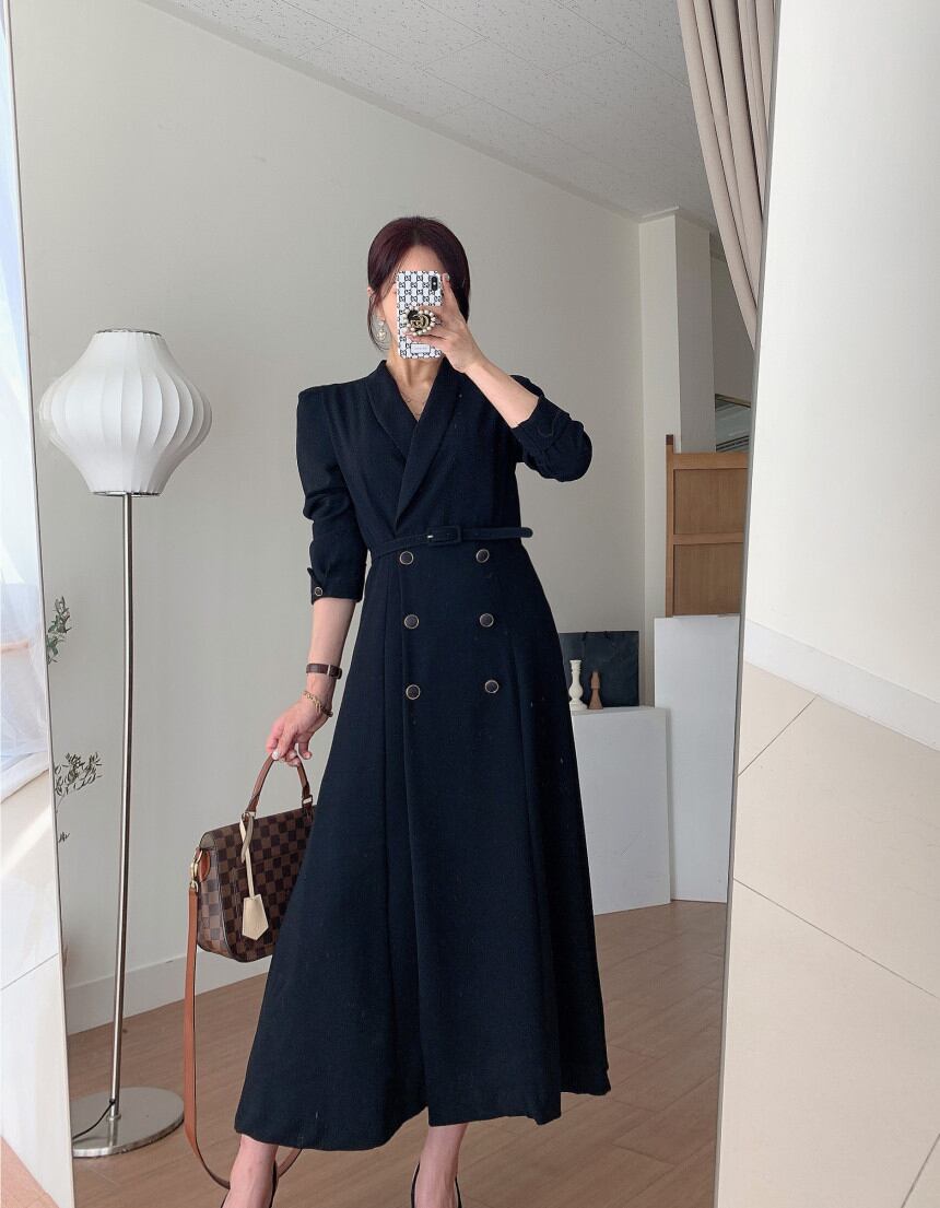 スーツ襟ダブルブレスト包帯ウエストソリッドカラートレンチドレス Vestidos デブラックホワイトオフィスレディマキシドレス 会社 学校 通勤や通学にも