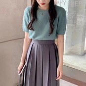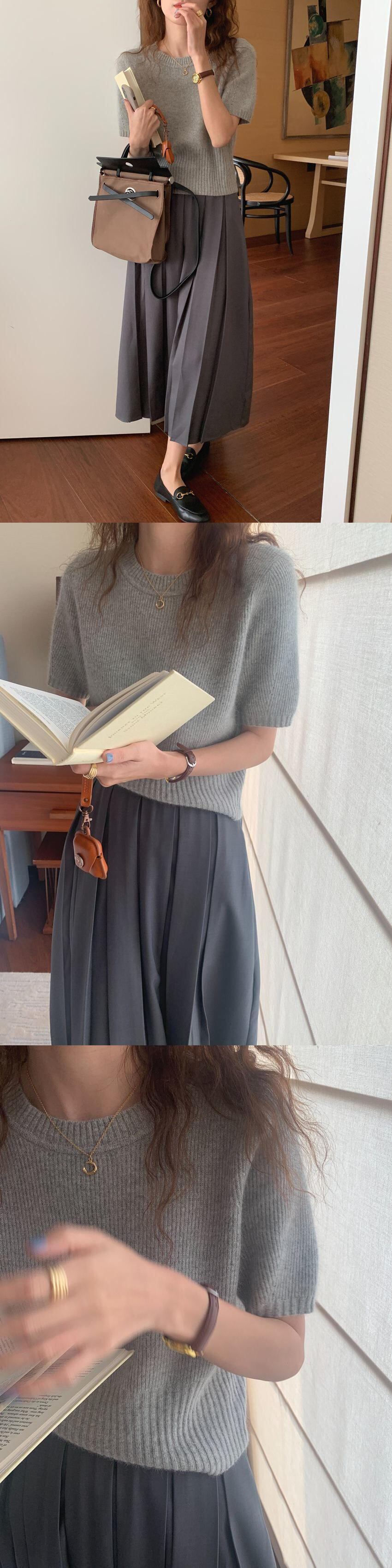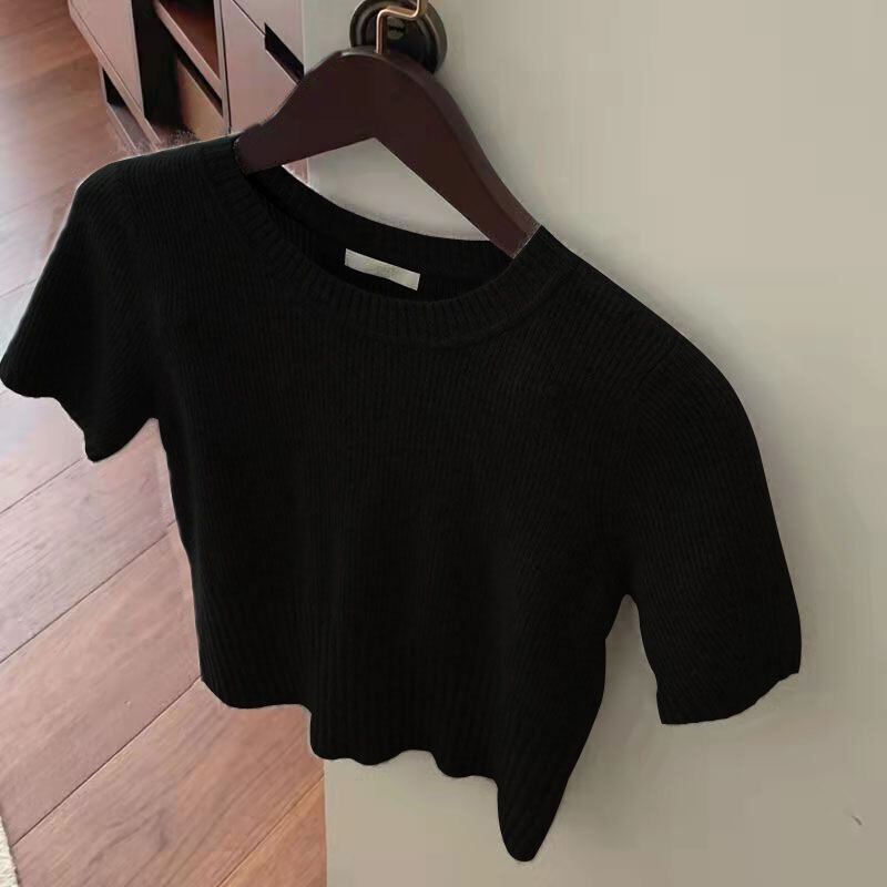 気質ワイルド半袖プルオーバーグレーセーターセーター Y2k クロップトップジャンパーニットシャツプルシック ショート ハーフスリーブ
