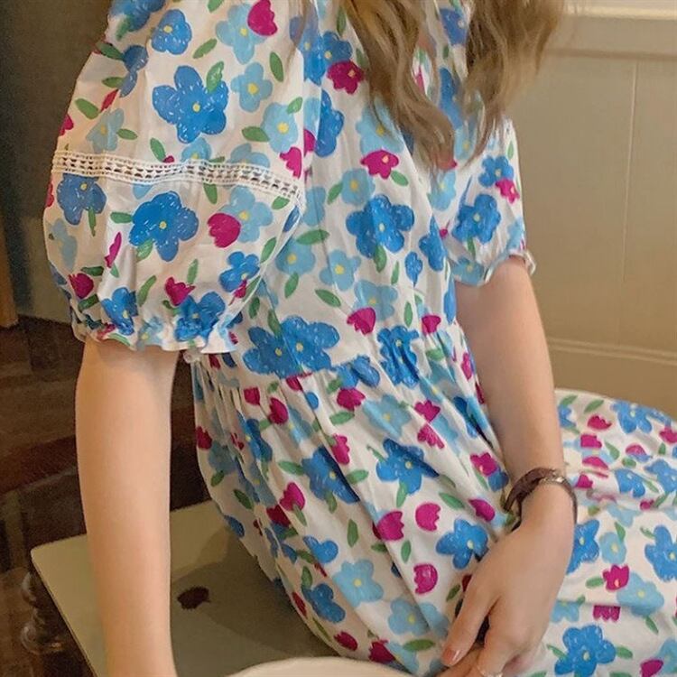夏レトロ油絵人形ドレス V ネック黒花柄シャツ Vestidos es パラセクシーミニドレスプリントローブ ブラック サマー 夏物 Vネック