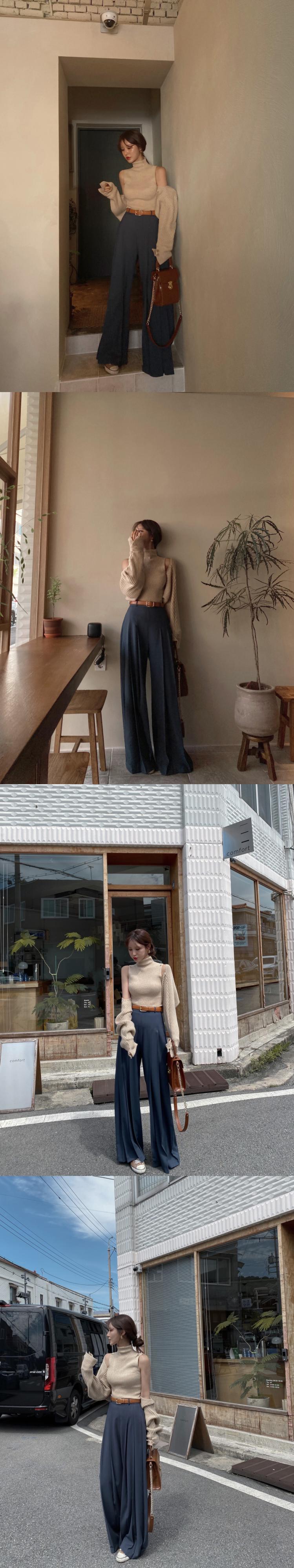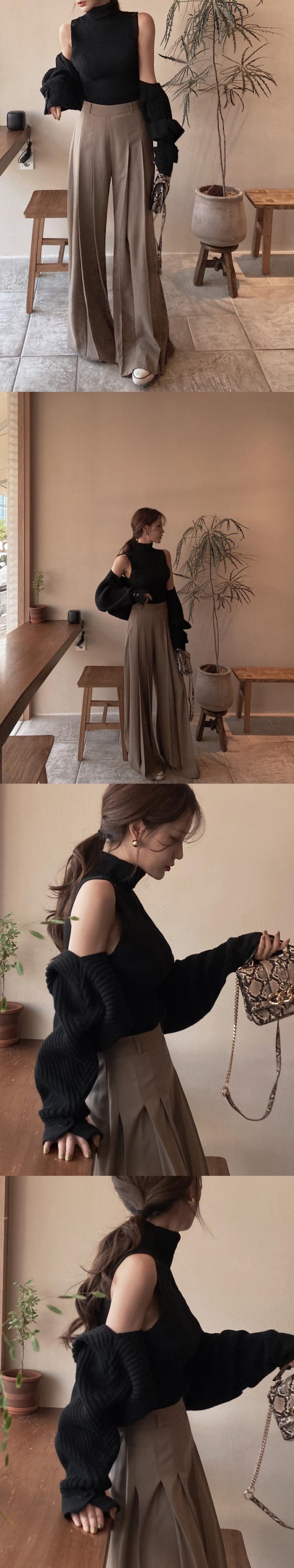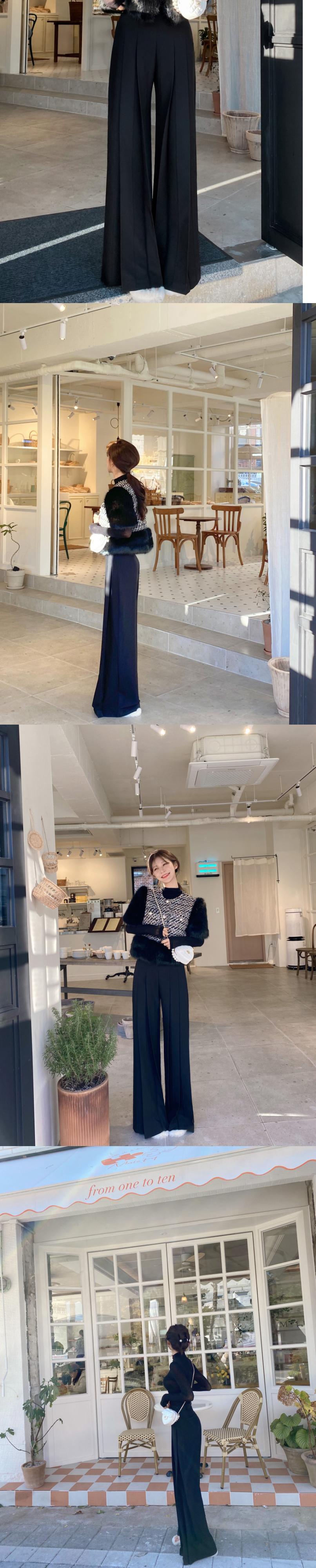 ウエストプリーツパンツシンプルパンタロンズボン Vinatge ワイドレッグパンツ黒フレア ブラック ワイドパンツ