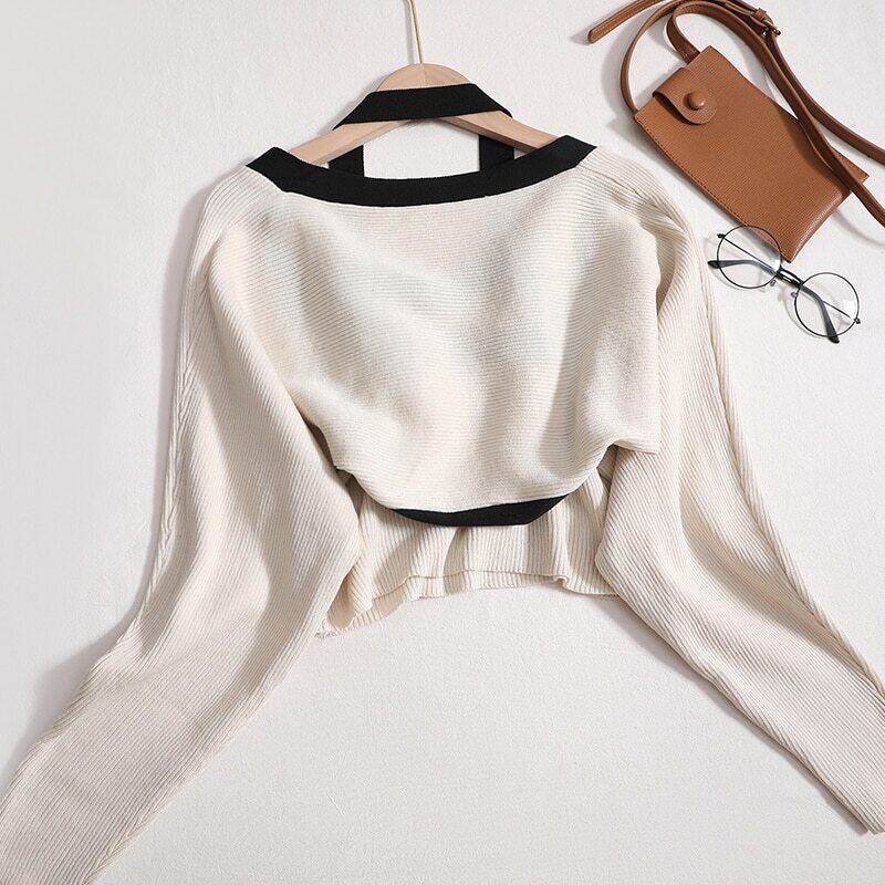 タンクセクシーキャミソール Y2k トップジャンパー 2 点セットセータープルオーバーセータースリム作物セーターニットウェア