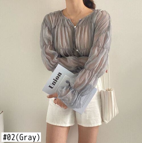 プリーツ ブラウス夏ルーズ折り目視点シフォン シャツ長袖トップス ロング サマー 夏物