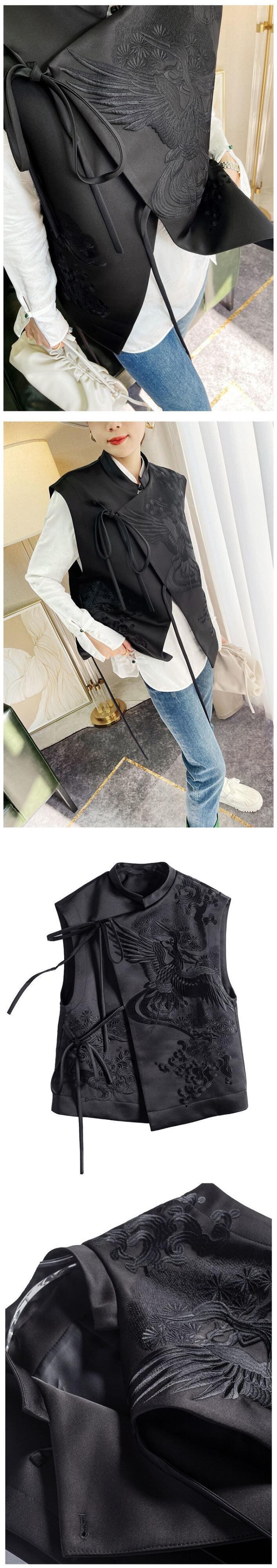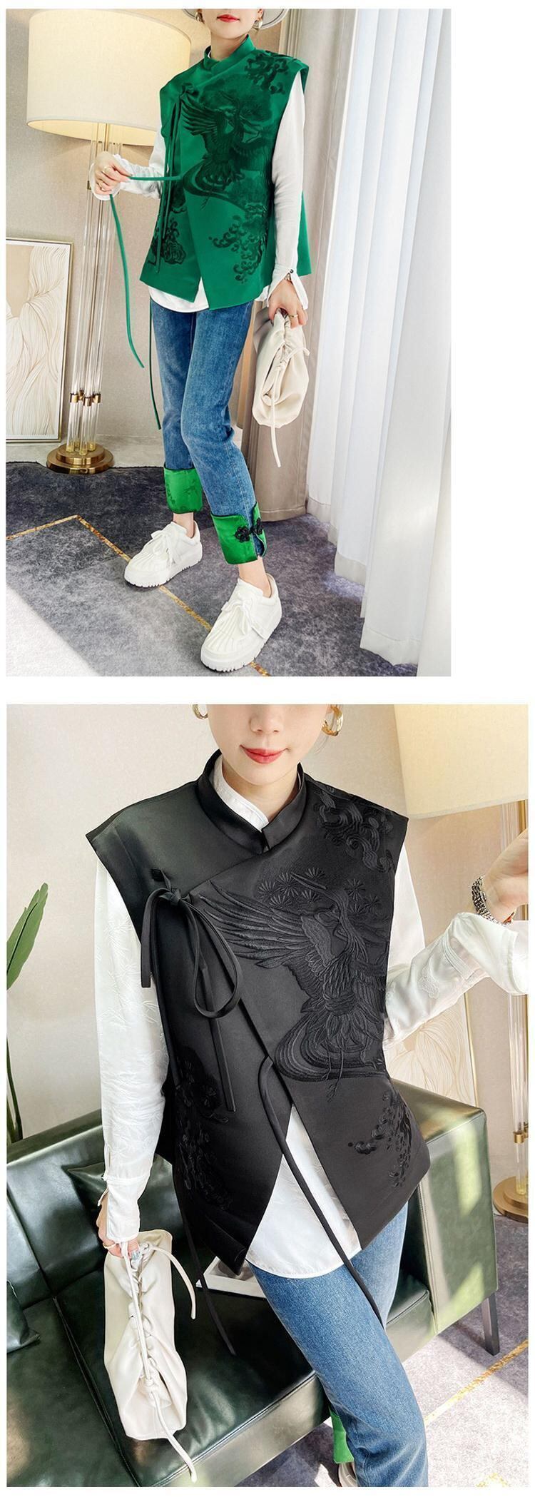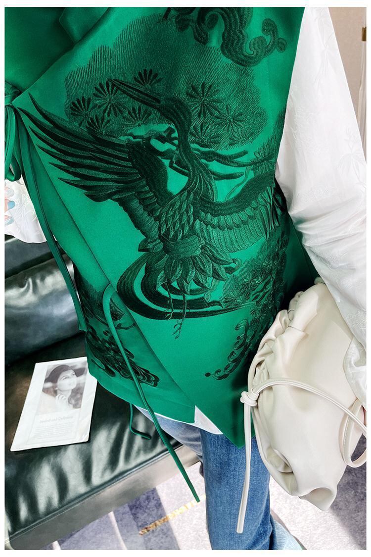ラップコート刺繍コートレースアップチョッキ Jaqueta スタイルジャケット Y2k グリーン黒ベスト ブラック