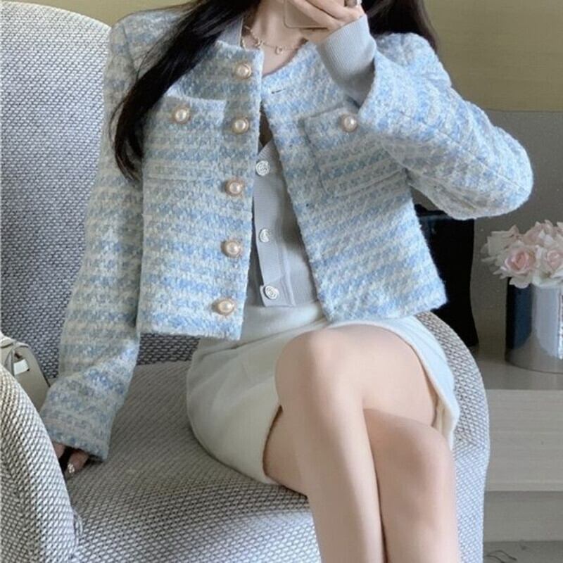 気質ブルーツイードジャケット Jaqueta Chaquetas 冬ジャケットウールコート ウィンター 冬物