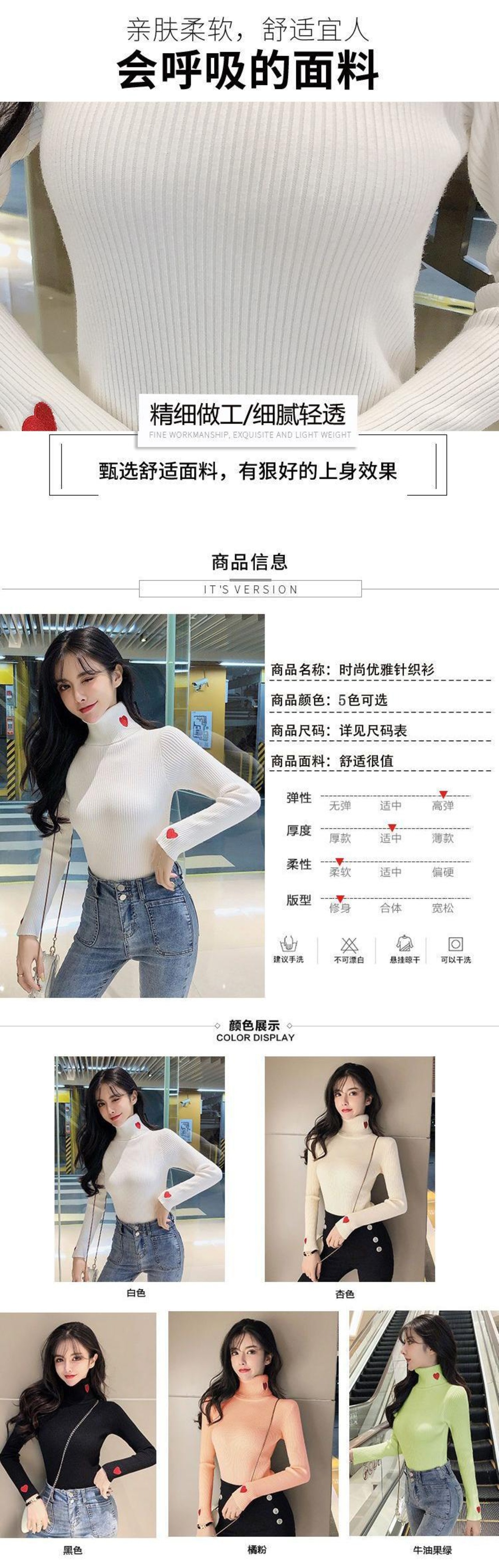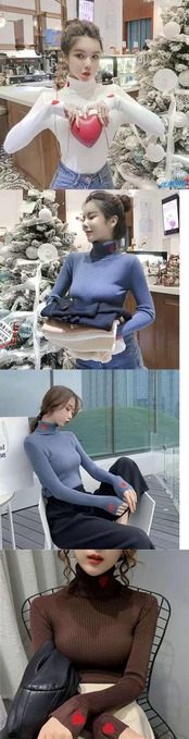 ニットセーターリブプルオーバーハート刺繍タートルネック秋冬基本的セーターフィットソフト暖かいトップス オータム 秋物 ウィンター 冬物