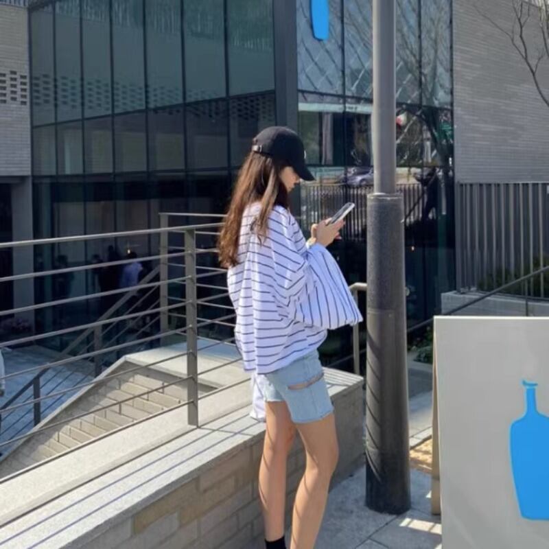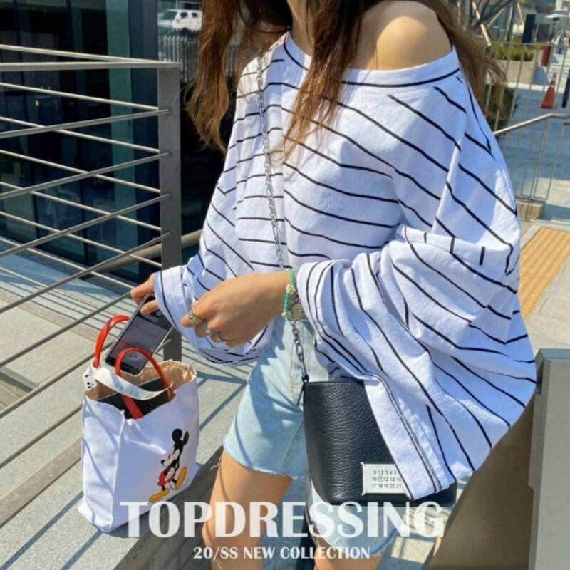 ルーズショルダーフレアスリーブトップオフショルダー長袖 Tシャツストライプシャツグラフィック Tシャツ Ropa ロング レッド