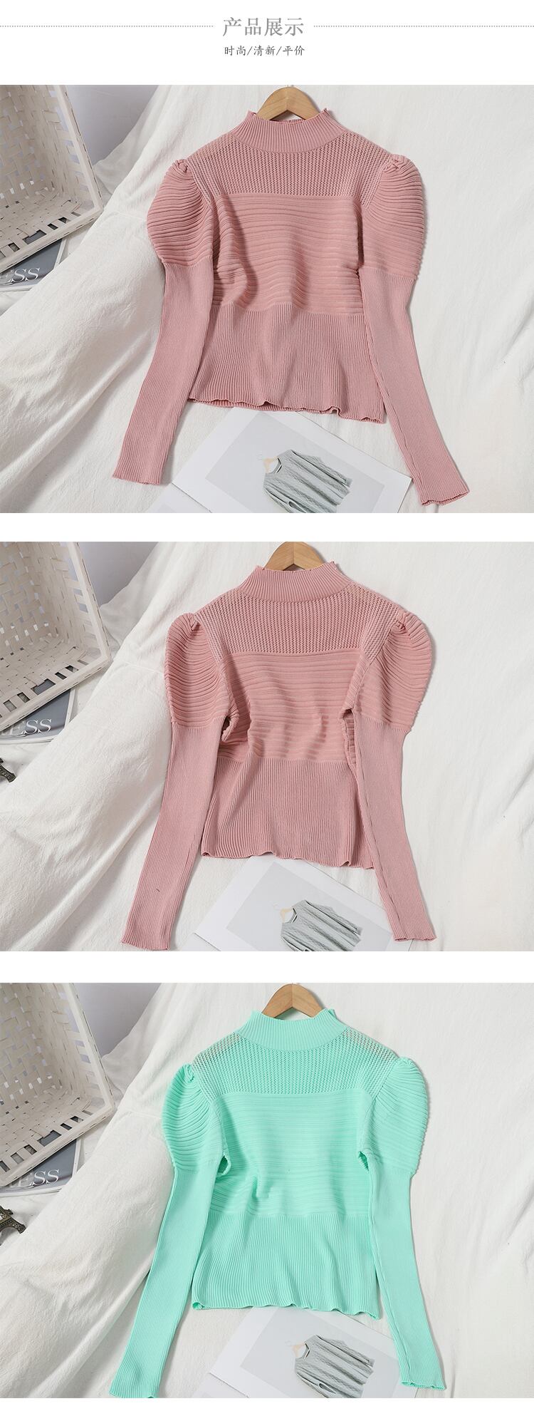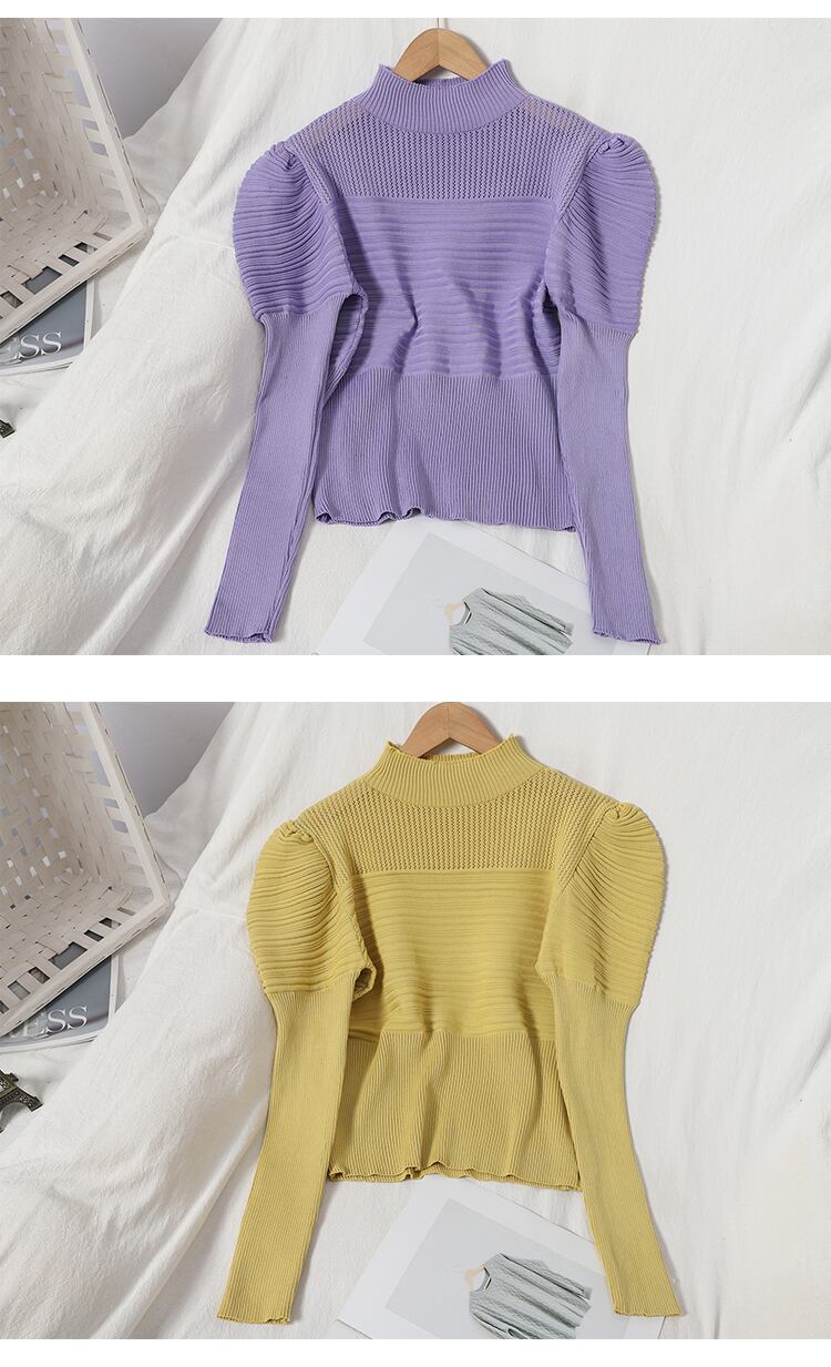 シャツハーフカラートップ黒ニットプルオーバーセーター Tシャツ春長袖服 ロング ブラック スプリング 春物 ソリッドカラー