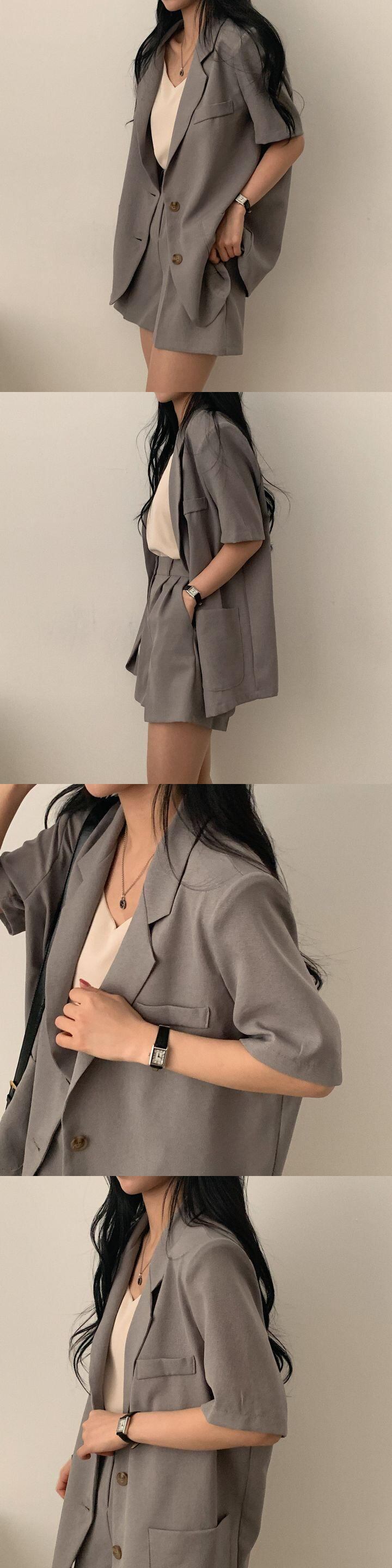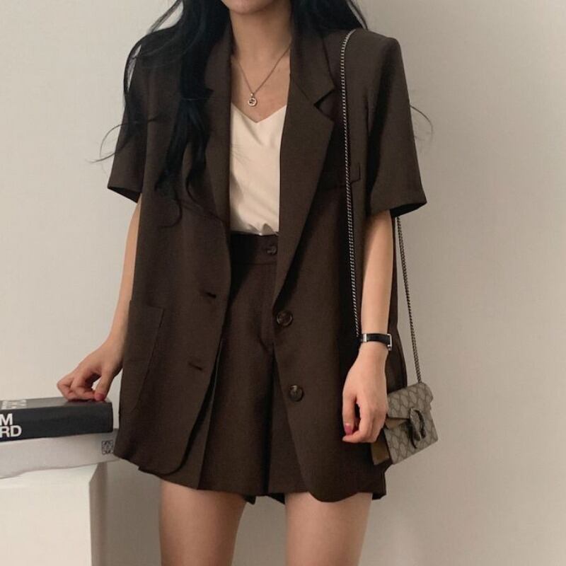 ショートスーツ黒ショーツセットトラックスーツ 2 点セット半袖ブレザーノッチジャケットショートパンツ Y2k シャツ ブラック ハーフスリーブ ブルマー