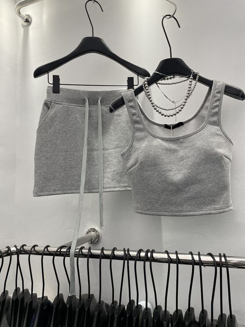 タンクトップキャミソールスリムトップス & Tシャツ弾性ウエスト黒スカートショーツセクシーツーピースセット作物 Tシャツミニスカート ブラック エラスティック 伸縮 ブルマー