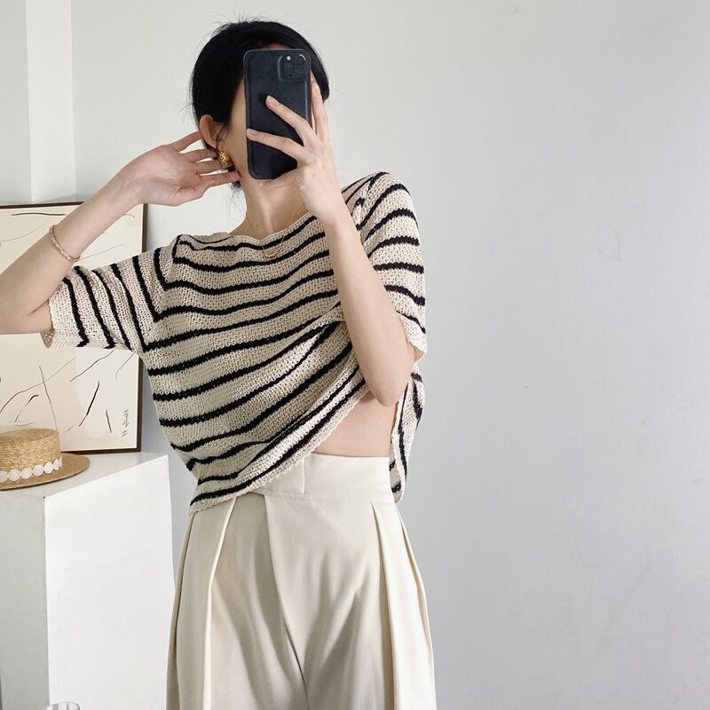 シャツグラフィック Tシャツアイス半袖ストライプ Tシャツ Ropa デニットトップルーズ Tシャツ服 Tシャツ ショート ハーフスリーブ シルク