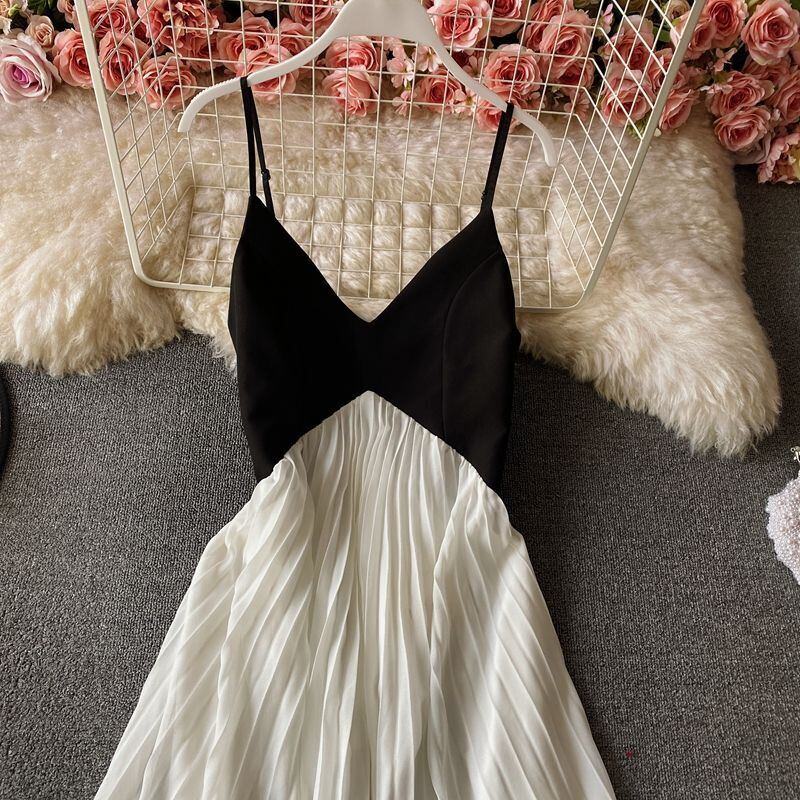 セクシースイング黒中断ドレス Vestidos デ es バックレス Y2k ドレスローブ夏マキシビーチパーティードレスプリーツ ブラック サマー 夏物