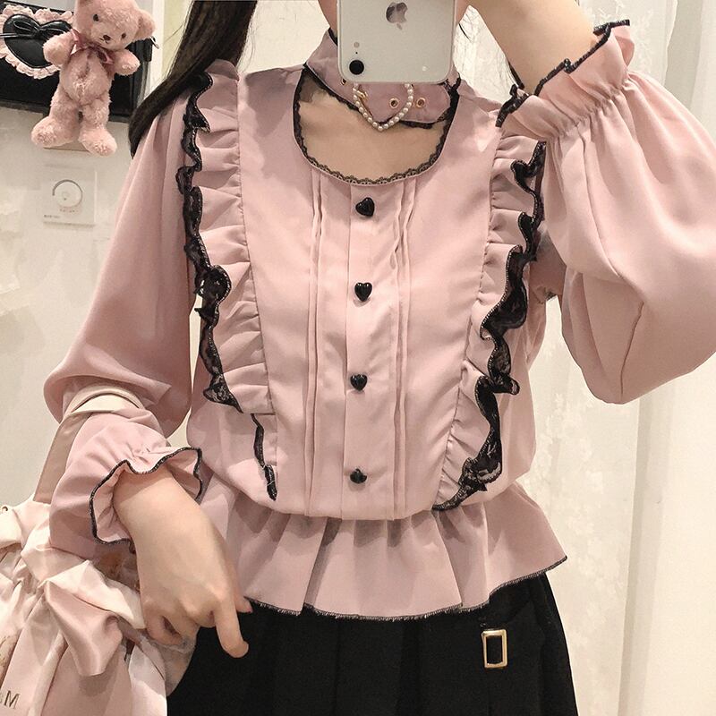 シャツロリータ Y2K かわいい ese スタイルブラウス長袖甘いトップスオフィス美的シャツ ロング 大人ガーリー スウィート キュート カジュアル 会社 学校 通勤や通学にも