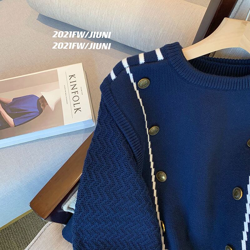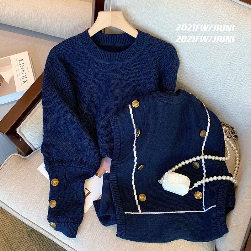 ダブルブレストセーターベスト Y2k 秋 2 セットプルオーバーツイストセーターセーターデ特大トップニット オータム 秋物