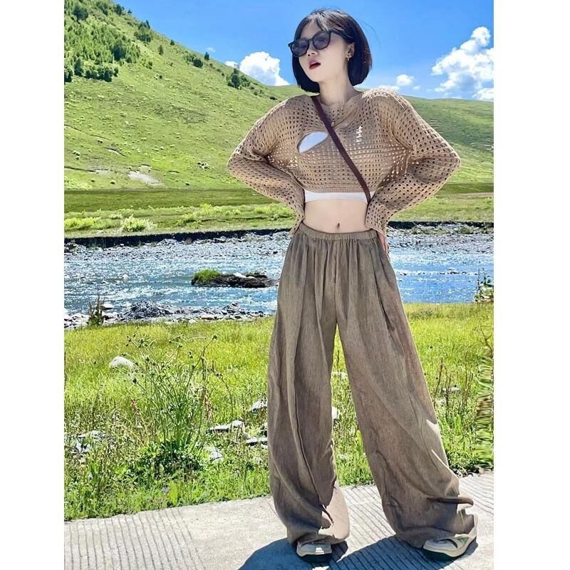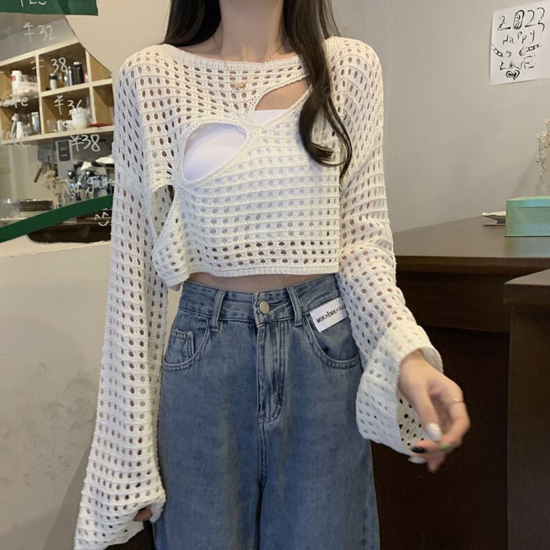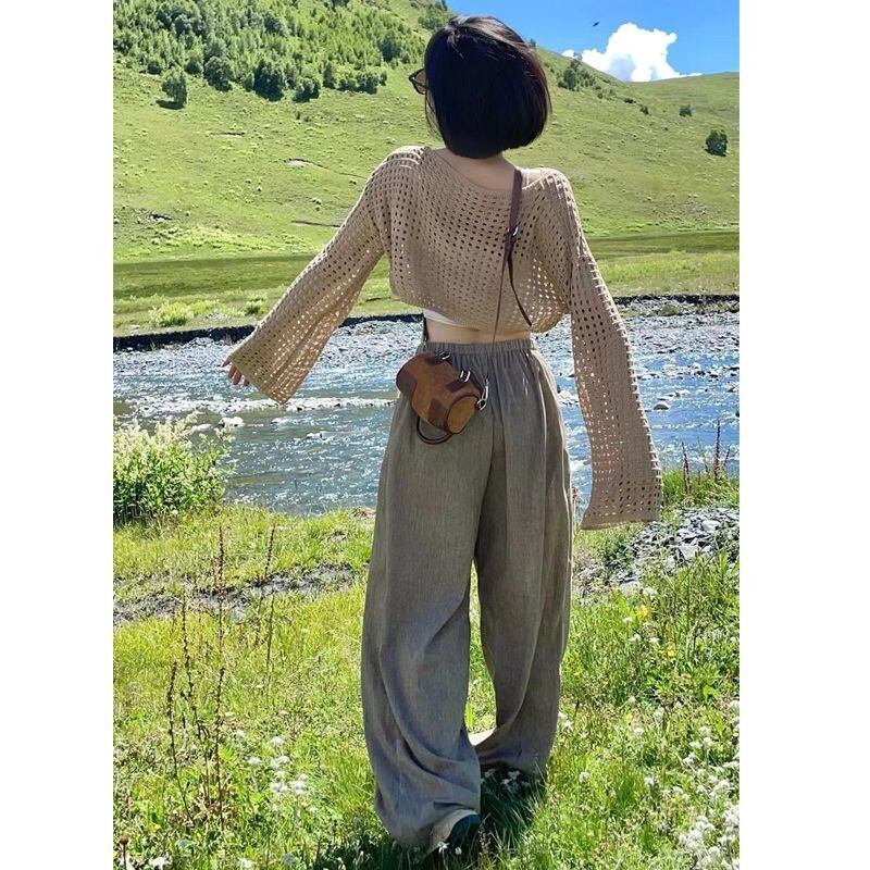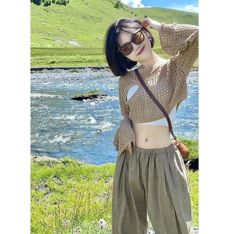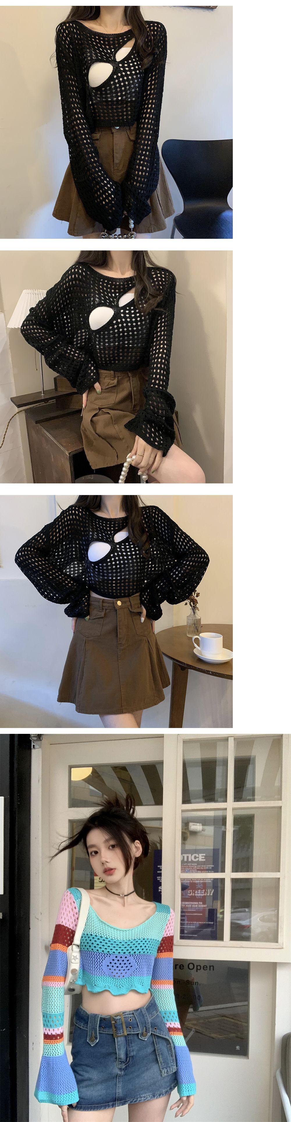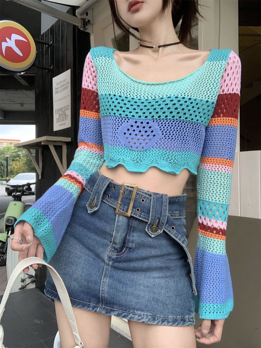 Y2k セーター カーキ ブラック ホワイト プル セクシー クロップ トップ O ネック レインボー セーター服ジャンパー プルオーバー セーター トップ Tシャツ Oネック
