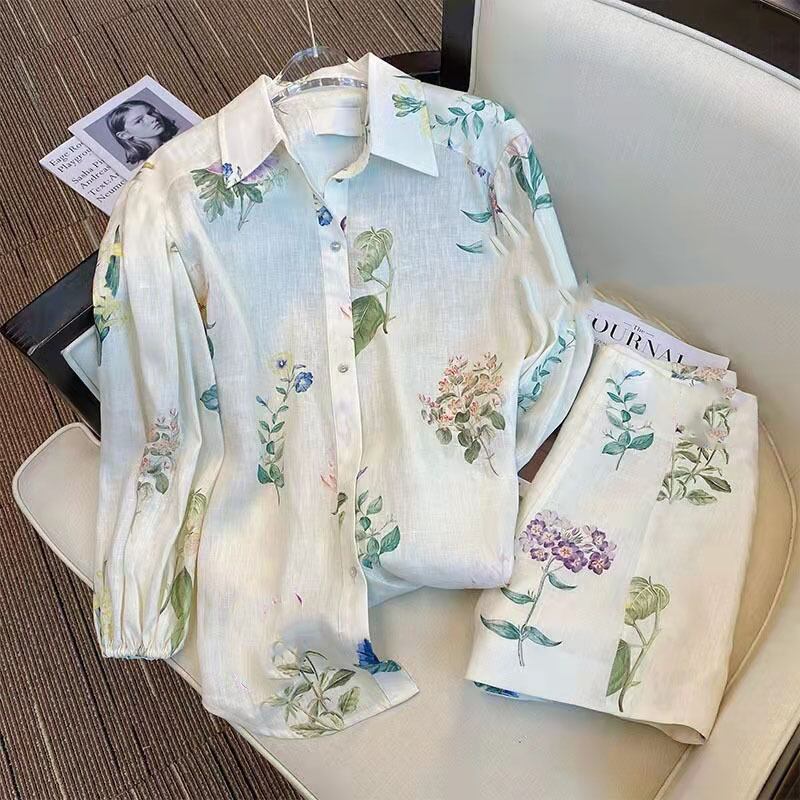 ショートセットトラックスーツツーピースセット長袖日焼け止めシャツ花柄ショーツプリントショートパンツ Feminino ブラウストップ ロング ブルマー