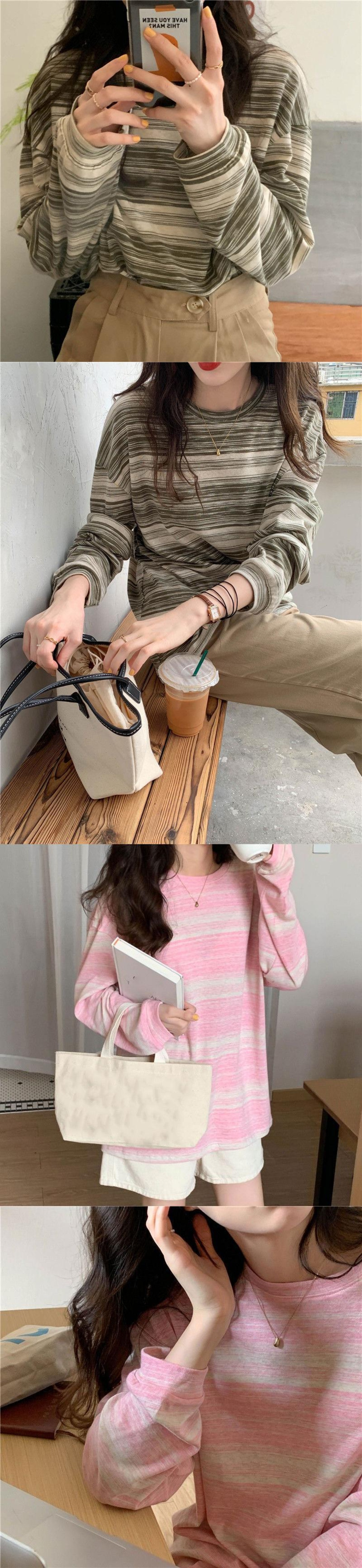 シャツ春秋グラフィック Tシャツニッチルーズタイ染め Tシャツ長袖ストライプ Tシャツ美的 Tシャツトップ ロング スプリング 春物 オータム 秋物
