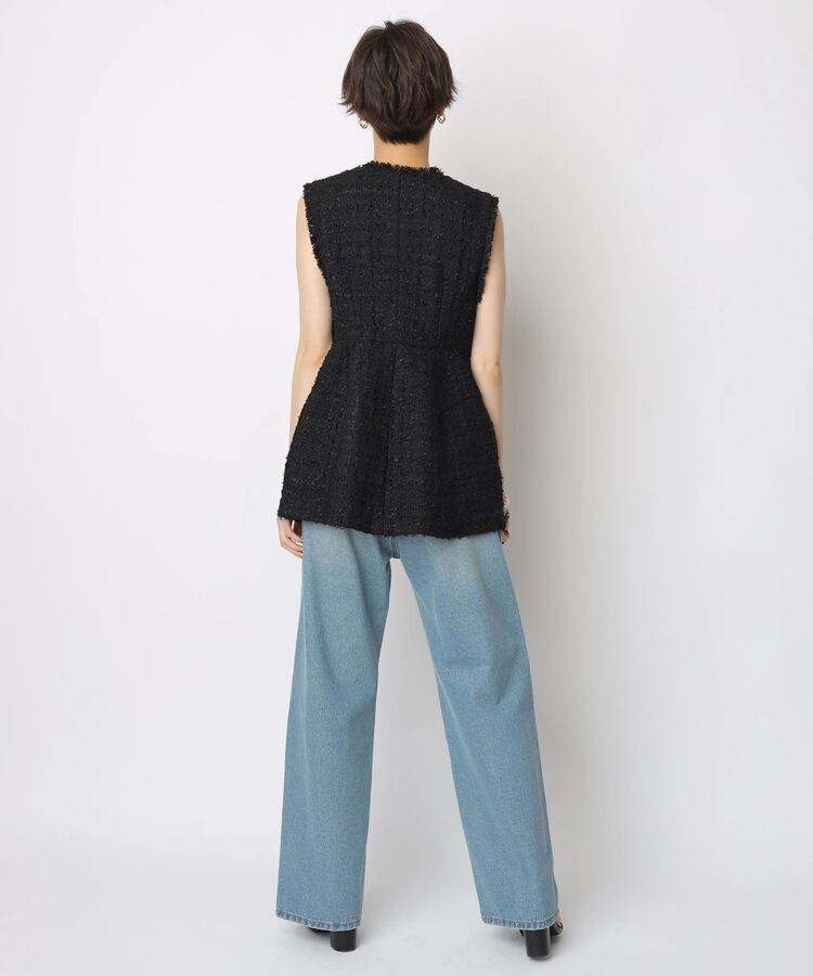 タンク春 ese スタイルパールフリンジベストフレグランスツイードレディトップブラック Y2k コート スプリング 春物 真珠